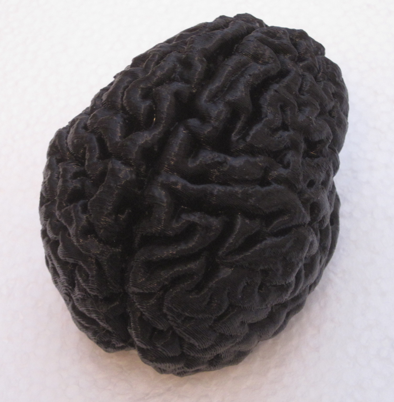 Ok, I'm pretty new to this but here is my second print. I reconstructed by brain from a fairly hires MRI scan. Some volume image processing and marching cubes to generate the input obj file.