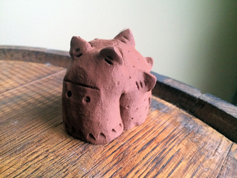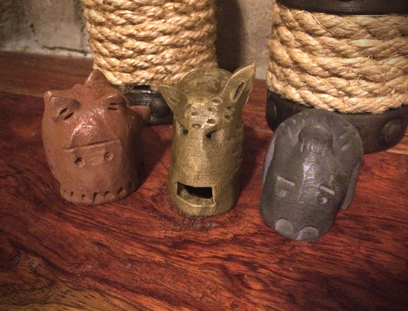 so I got ahold of some samples of some esun stuff still in beta. a stainless steel and copper filament. these are unlike their bronze which is more pigment based. these are heavy and actually have metal in them much like colorfabb filaments. both of these printed very nice and clean. the stainless in the just printed for looks like raw cast iron/steel and when its buffed out a little it brings a shine or shimmer out on the print. I didn't bring any of my pieces to a high poish at all. if you sand out layer lines and polish it smooth it will get fairly shiny. that look just didn't go with my prints which are all designed by walter's sister. not much into knick knacks but I really like these little things. very aztek like. anyway, the copper.....the copper when printed looks and feels just like red clay pottery (second pic). nothing like copper at all actually. when you buff it is when the pinkish orange shine comes out. again, its not overpowering. just enough to give a slight metallic look as the light passes over it.