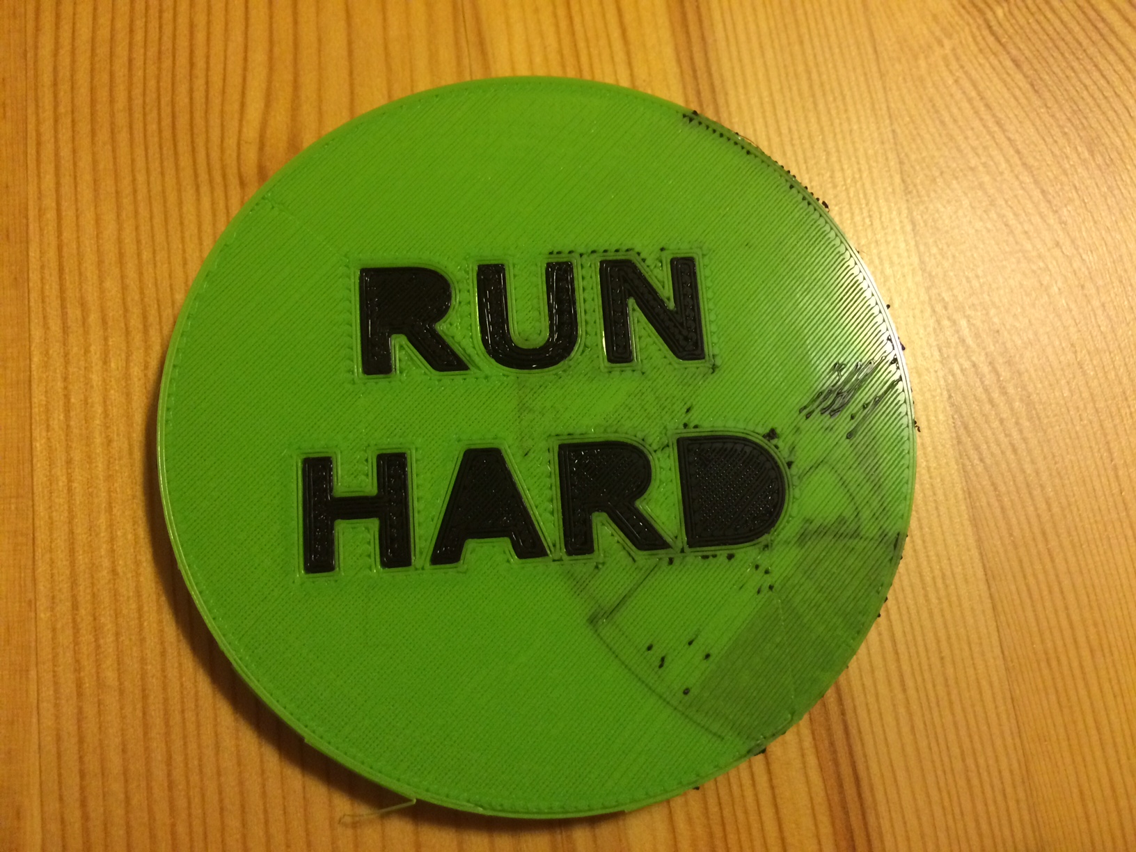 Yeah, that's one of them - he's created two processes for it. It's essentially what we do by inserting a pause into the code, but he carries the base color up into the letters for a few rows so that there is no dragging of the dark nozzle across the lighter base color. For that example, he raised the text above the surface.