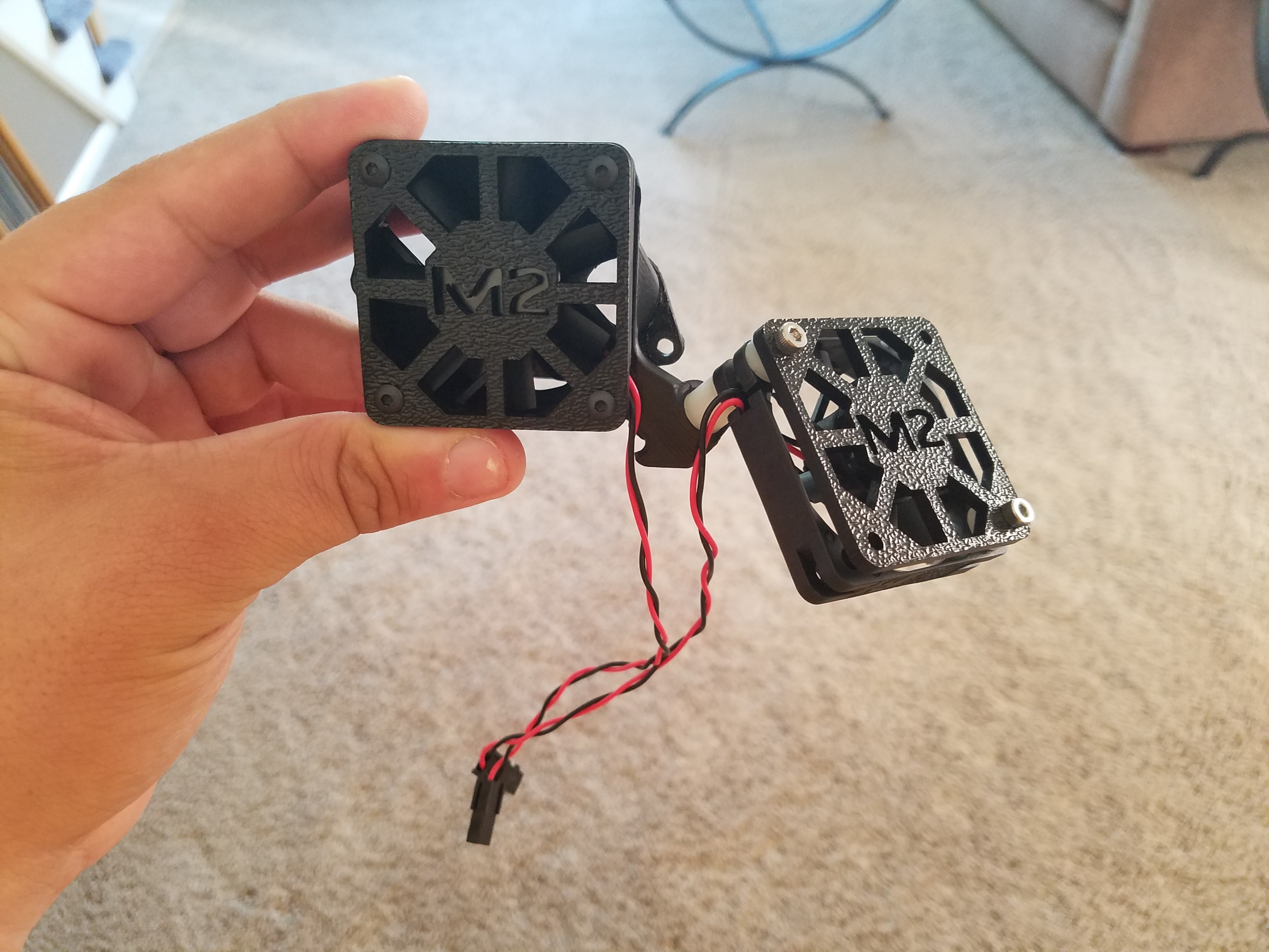 I also did a fan remount on my dual, with an attempt at a shroud. Combined with my sooper fan, I was able to get very creditable 60 degree overhangs facing away, and 70 degrees facing front.