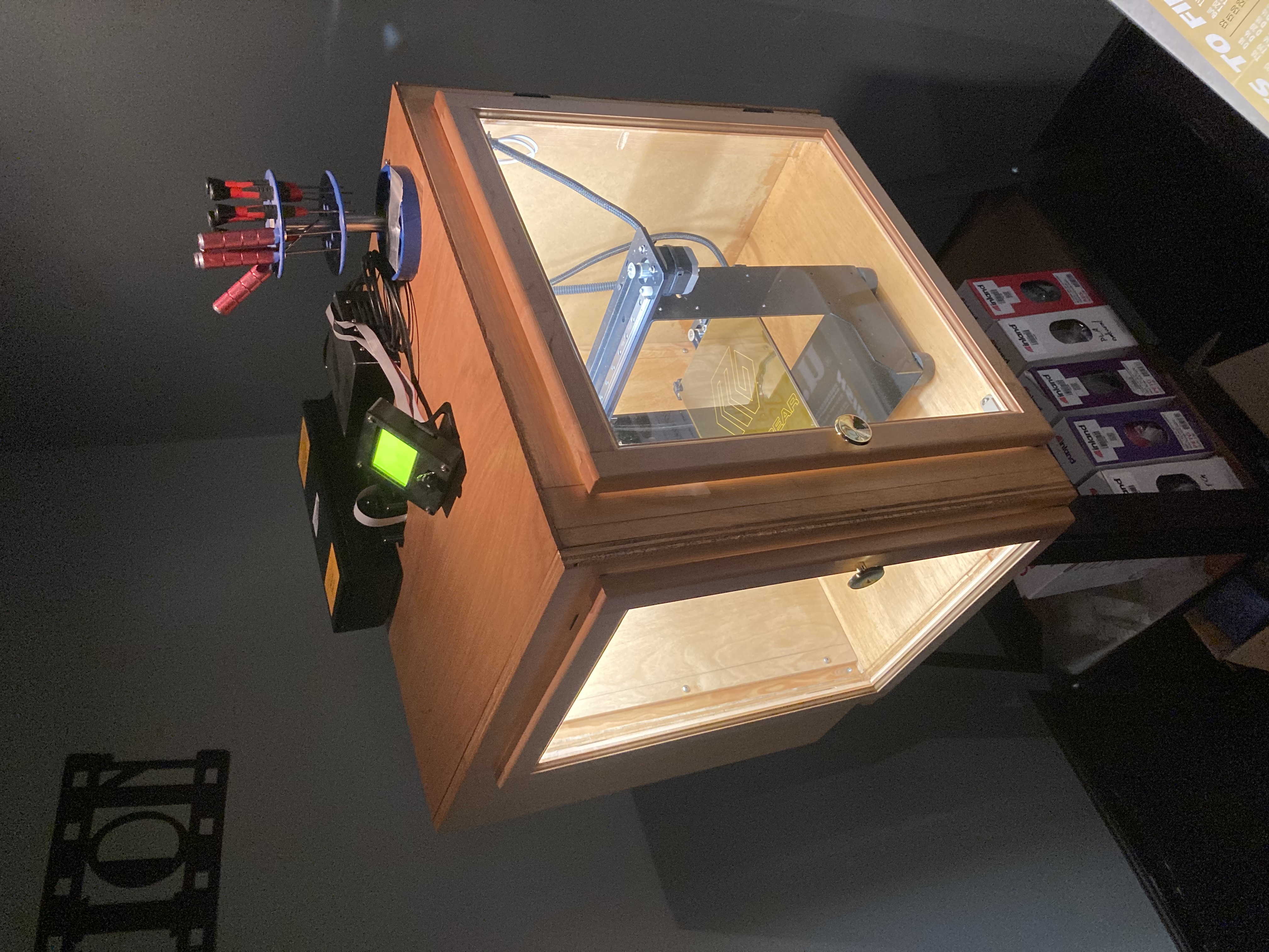 The enclosure can be inculded for an additional $300. The wire harnesses have been modified to move the electronics to the outside of the enclosure but can be restored to the original configuration if the cabinet is not wanted.