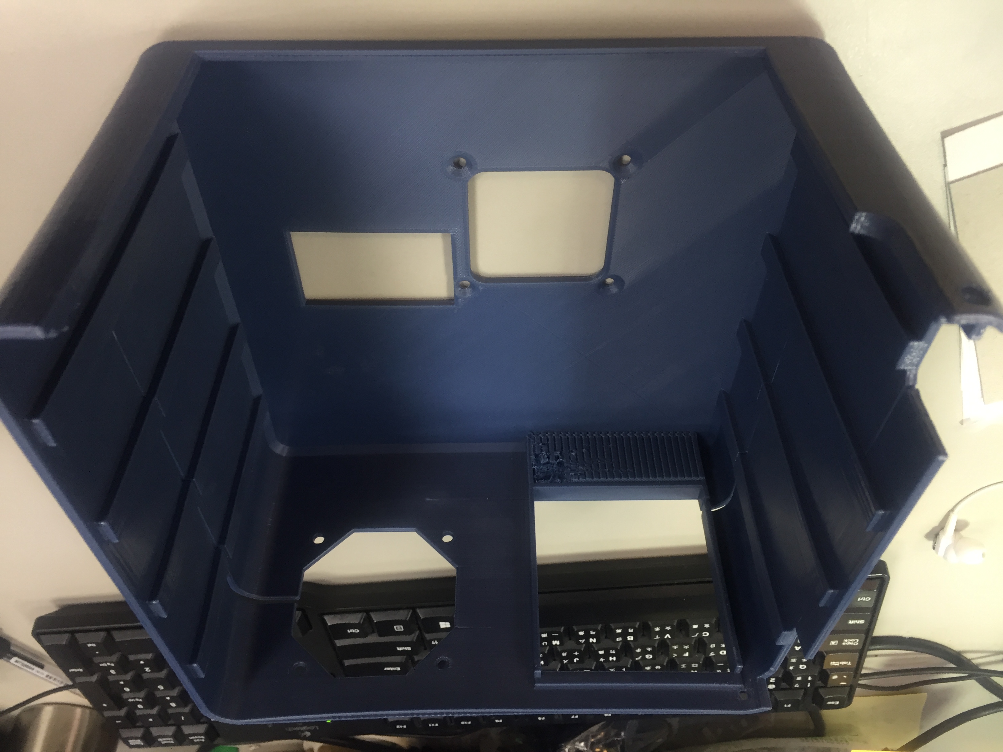 And I dont know why my PEI seemed to be more "sticky" that those read on the forum. It runs on lower temperature and still take a lot of effort to remove parts. :/ (I guess it's because of the spacing...?) Well but that kept the case corner from lifting, and the warping force is so strong that the case even cracked the glass underneath the PEI in half, lol. And I've also tried PETG, thinking that I might have to sand-blast it later if it succeeds, but end up breaking 2 glasses in a row (I tried printing it on the PEI but it stuck too well that I had to sand the PEI twice to remove residual parts, so I lost patience and went with the glass).