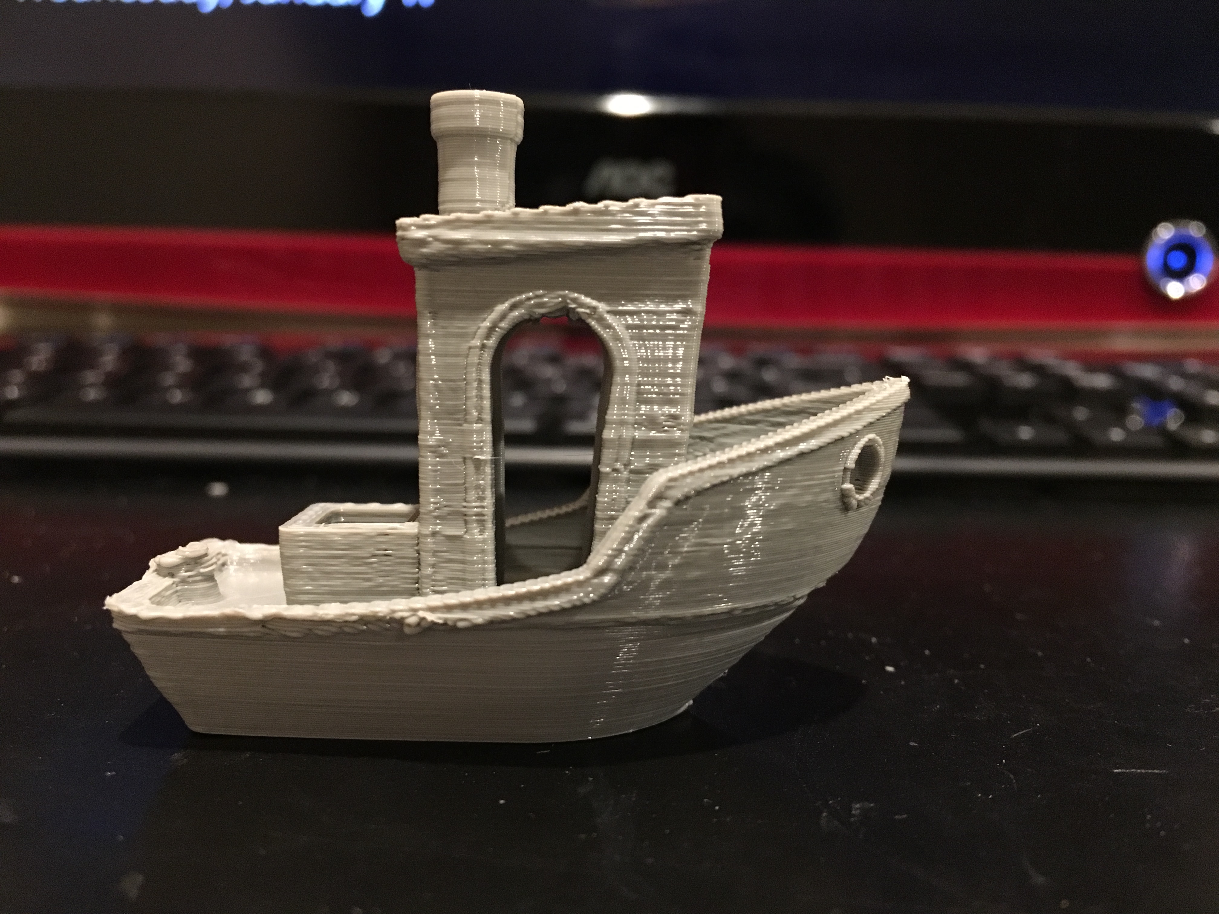 So I got some new filament for a new project, Hatchbox PLA gray. I can't make odds of this defect on this Benchy and I think it's an inherent issue with Slic3r.