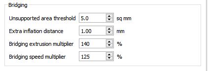 The other thing most people miss is that first setting - you want to lower it from the default of 50 sq mm, or whatever it is - that's the threshold where the bridging settings kick in. The lower the number, the sooner it kicks in.
