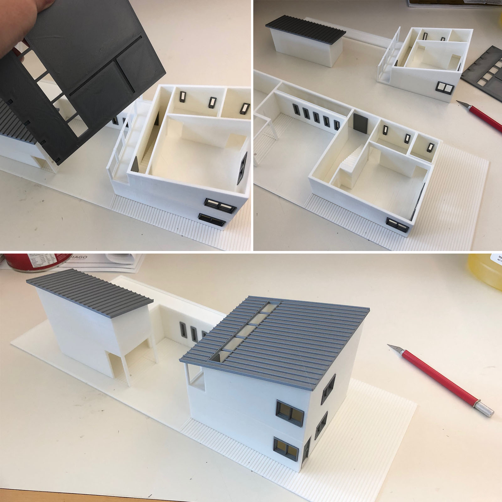 my background is rendering (mostly) indoor and some outdoor architectural scenes with max and v-ray and I actually tried to market doing models for local developers or/or real estate people, but didn't get anywhere yet. but your models look excellent and very precise. I see the exterior ground looks like wood too, good choice. The geometric trees work well too. Have you tried a clear filament like t-glase for plate glass windows? that might work well