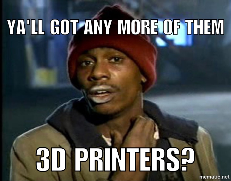 Friendly ribbing, no ill will meantjprochnow wrote:I have sold 3 makergear so far. 2 ultimaker 2s. 3 rostock max v2s, 3 makerfarms, 1 taz 5, 2 lulzbot mini, 1 printrbot simple metal, 1 kossel mini, 1 prusa i3. Needless to say I have tons of experience with many machines. You may ask which I liked the most. It's by far the makergear.