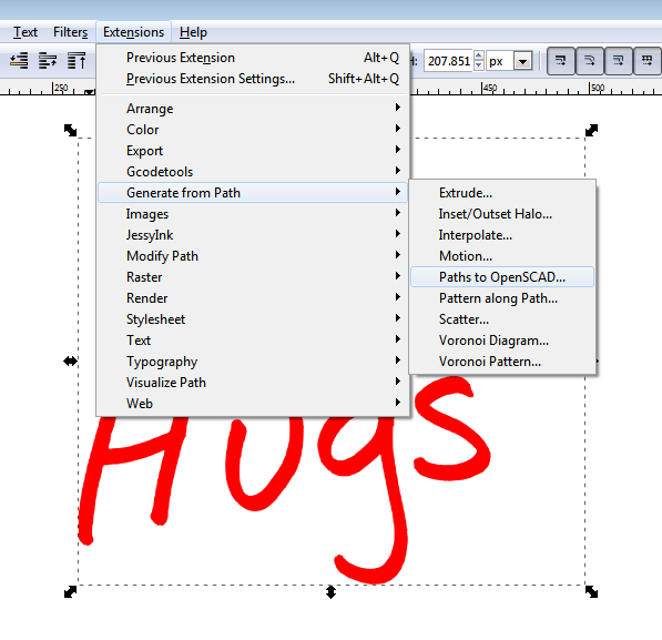 Here's a quick demo I just did using the Paths to OpenSCAD plugin for Inkscape, and OpenSCAD:w22 wrote:What would be the easiest software to use for this purpose? [...] Maybe I would create the signature in a picture and then combine the picture and the print via SVG export and then .STL convert?