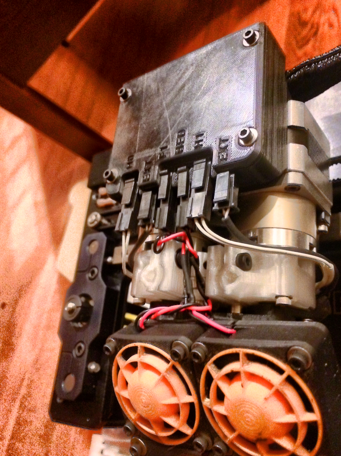 I need to swap the extruder and heater connections on the left side and make a few other minor adjustments to the design before it can go public, but I installed Rev 1 tonight and it worked out pretty well.