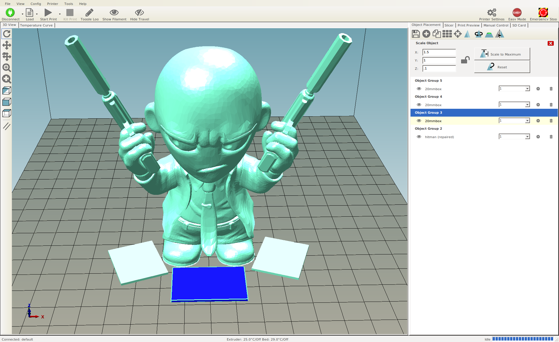 Unfortunately, my first couple of attempts failed with the support toppling so I decided to add some manual rafts in repetierHost with the arrangement looking like: