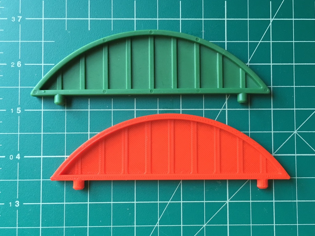 Somehow my son has acquired an enormous volume of Thomas the Tank Engine play sets. One(!) of his roundhouse turntables is missing the track portion. Most fortunately, I had an extra one to copy, or it would have been much work to duplicate the gearing.