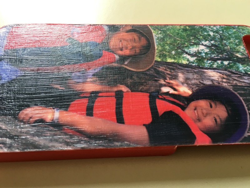 Last night I looked around my desk and saw my tub of mod podge, my new inkjet printer, and my new craft cutter, and decided I needed to do something. I decided on a photo back for my 3D printed phone case. I had the model, so I was able to extract the back face as a DXF to cut from. I also have a non-decorative idea for a printed back where I would put several loyalty card bar codes and my Starbucks barcode.