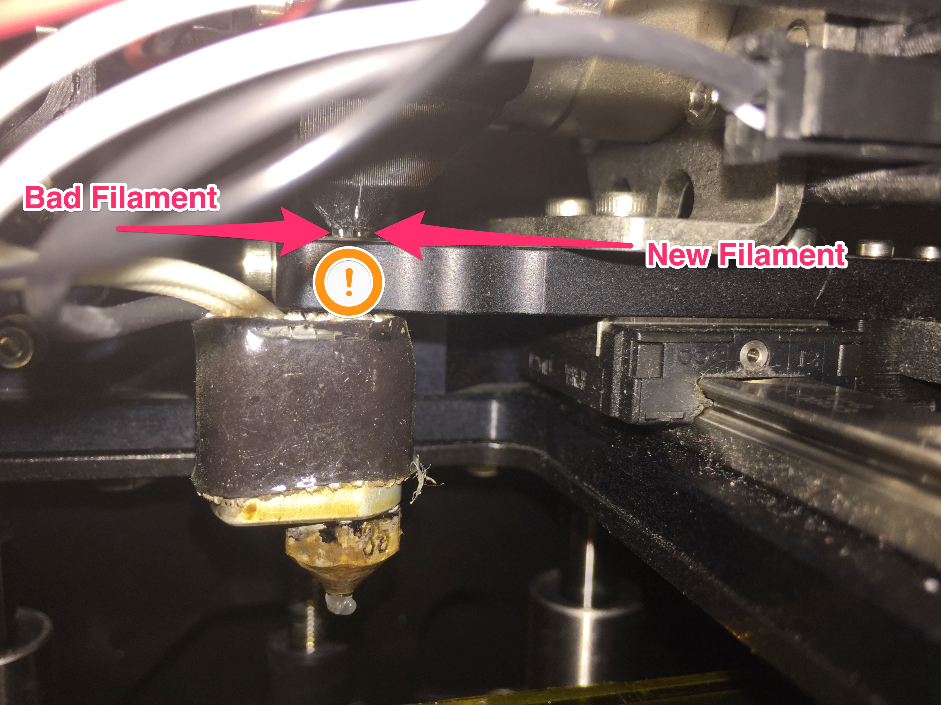 Please see attached image. Something has happened, widened I should say, whenever my filament runs out or snaps due to its dryness for being out too long and when I put the same filament back in or a new filament, both pieces of filament are somehow now able to fit in the same hole going to the nozzle, causing immediate jamming in which I have to then take the nozzle apart to retrieve the bad filament piece. I literally have to do this every single time the filament breaks or I run out of filament. This takes forever as I have to wait for the printer to cool down, take apart the nozzle, retrieve the filament, reassemble the nozzle, then retract the good filament, then clip off the good filament that has been ribbed by the double filament error, then attempt to extrude the second filament piece.