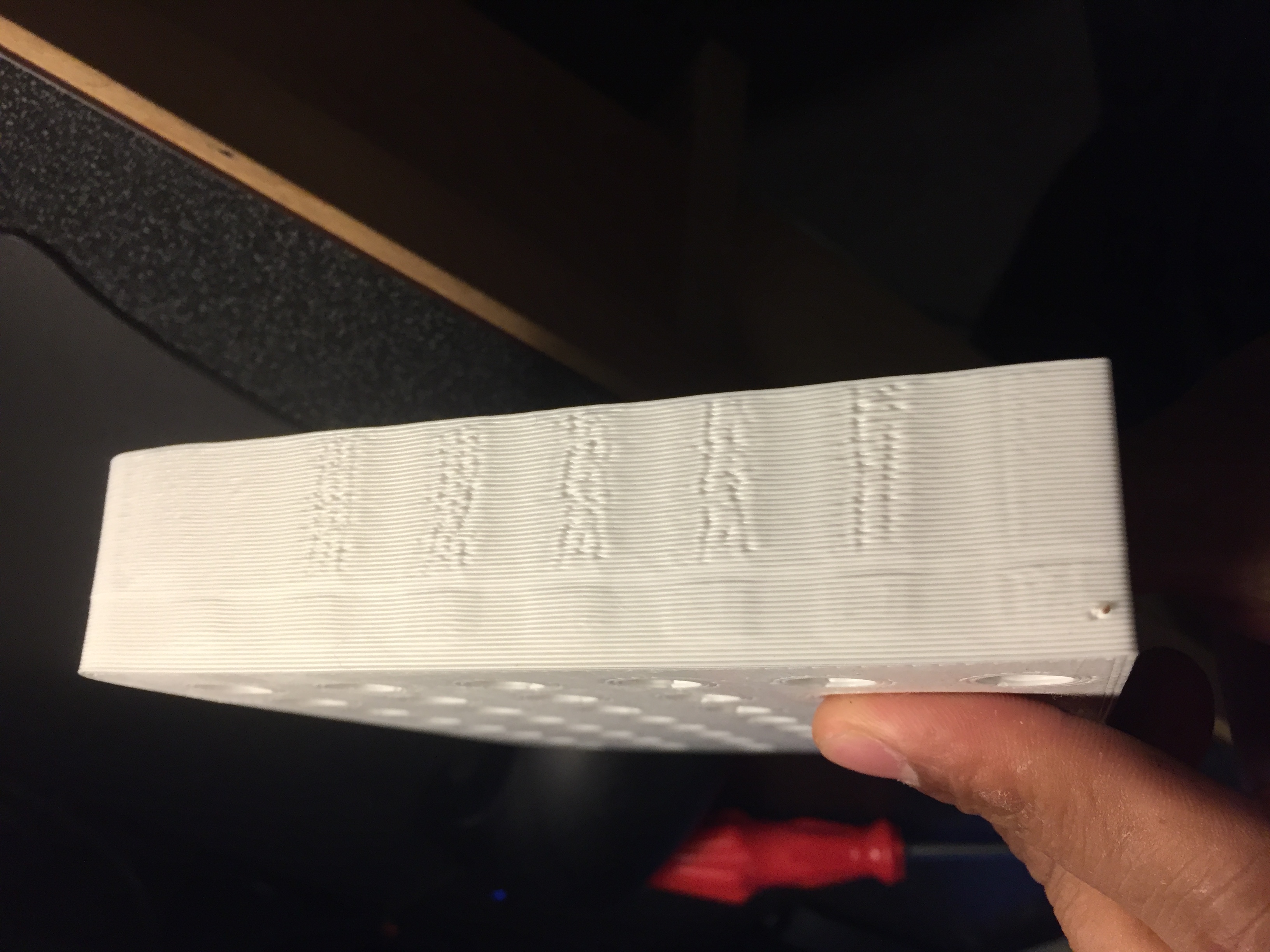 Hi all, I'm having problems with printing large objects with the 0.75 nozzle i recently got. I have been getting very bumpy walls (See attached pic) and I know it is something with my simplify3d settings but I can't pinpoint what it is. I am printing at 900mm/min, extrusion multiplier of 0.95, extrusion width set to auto, retraction speed 6000mm/min, retraction distance 2mm. Any help would be appreciated!