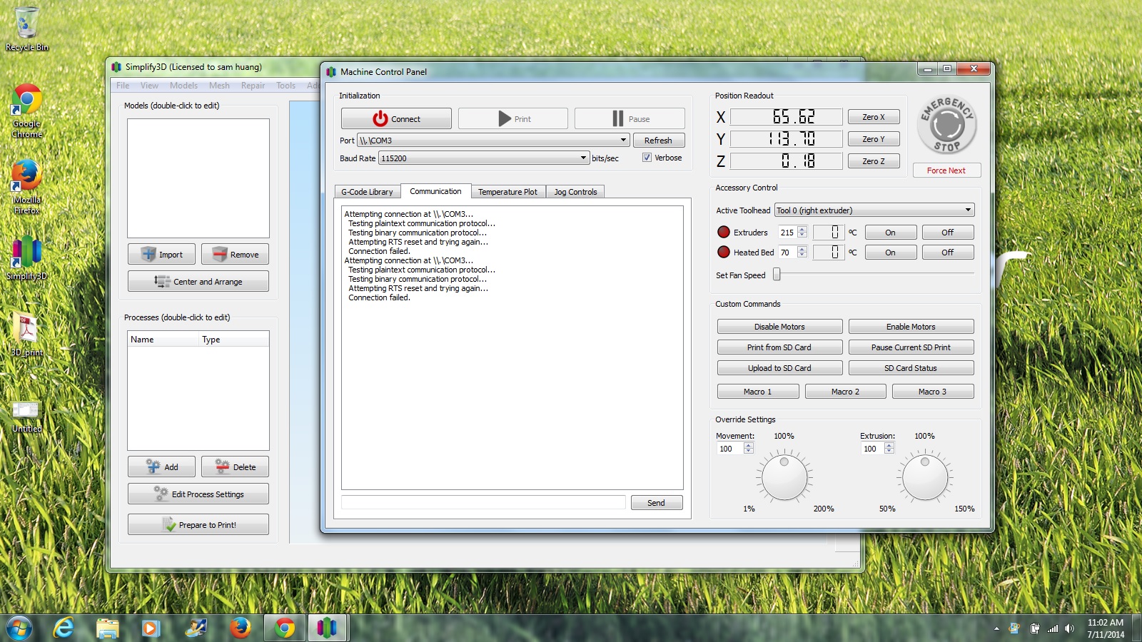 Re: Printer can't connect to computer (simplify3D)
