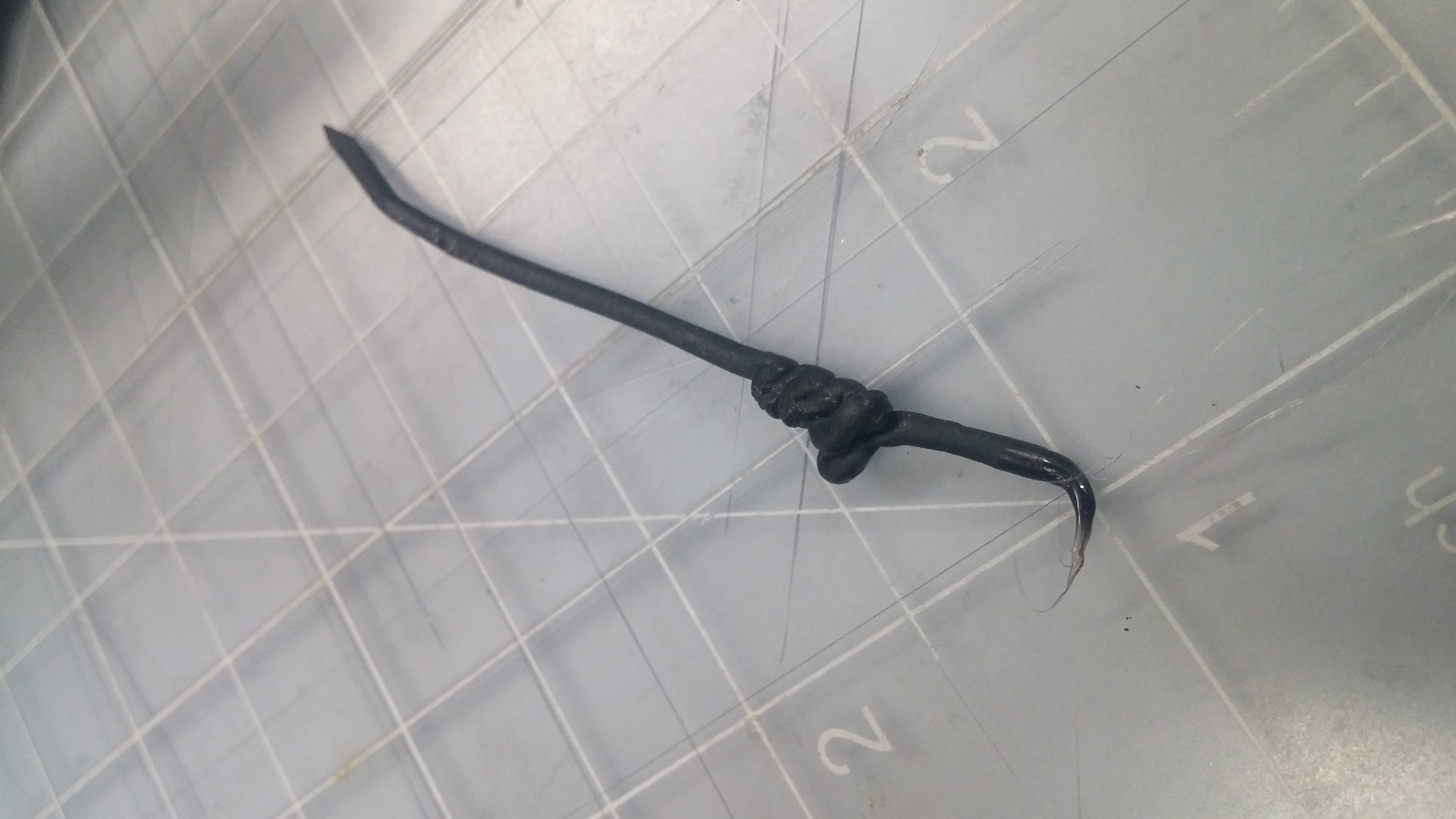 In the attached photo you can see the short end that was in the hotend and the section above that looks like I was trying to shove a limp...well it wasn't satisfying here either. I've cleaned out the hot end and have had to redrill the filament drive (many times...new one on the way). I've aligned the drive as well as I can with the hotend. It all goes well for quite some time then just fizzles out. I thought maybe the temperature of the hot end had dropped so the filament would no longer feed and that was causing the traffic jam, but that doesn't seem to be the case.