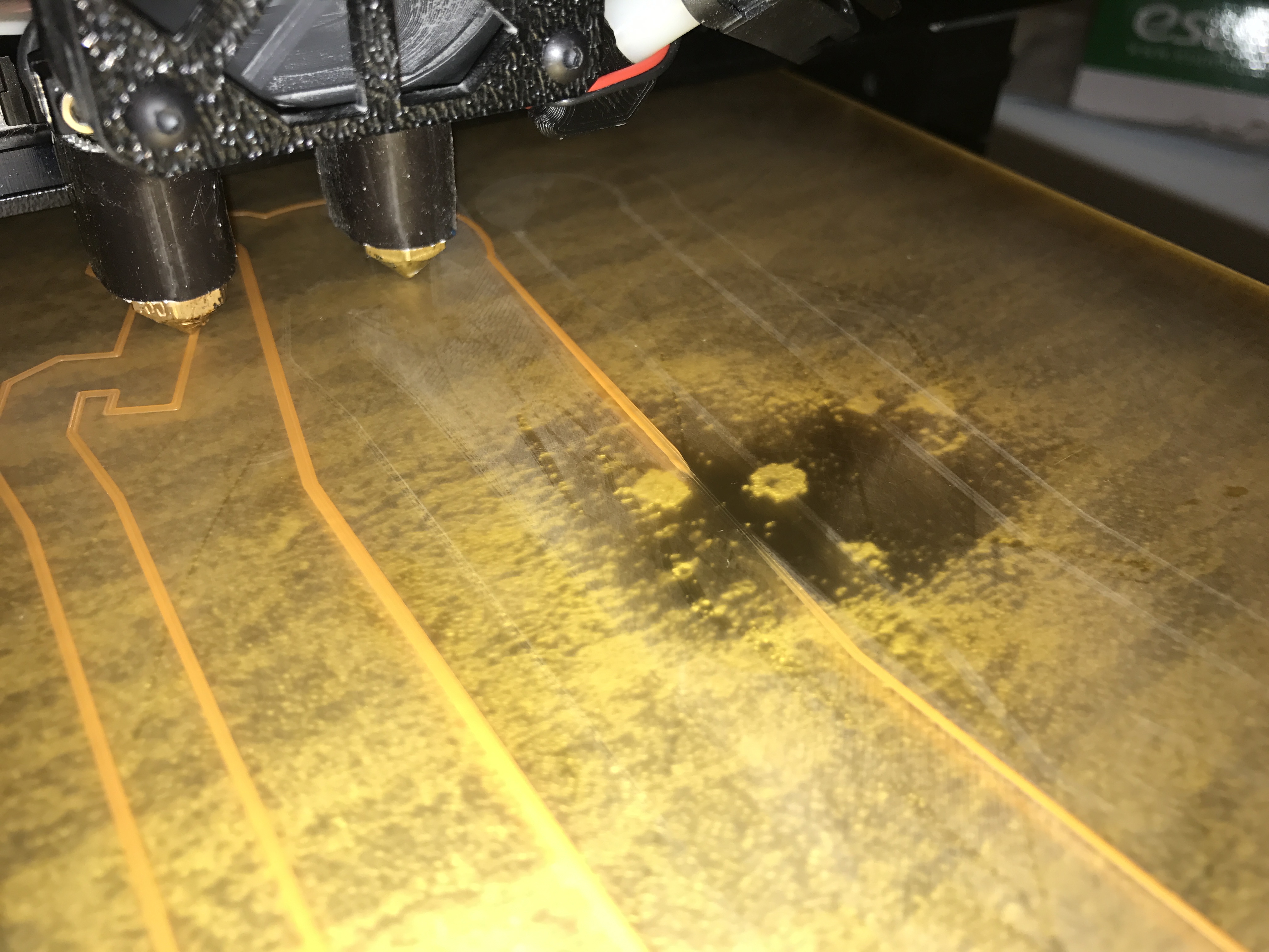 I have scuffed with 1000 grit sand paper and there is no longer any gloss to the surface. Wiped with damp paper towel and then cleaned with IPA. The bed has been re-leveled and z adjust set.insta wrote:Did you scuff the PEI? Some sheets need it. I didn't do it unilaterally because it's easy enough to do when you need to, and the glossy surface is nice until then.