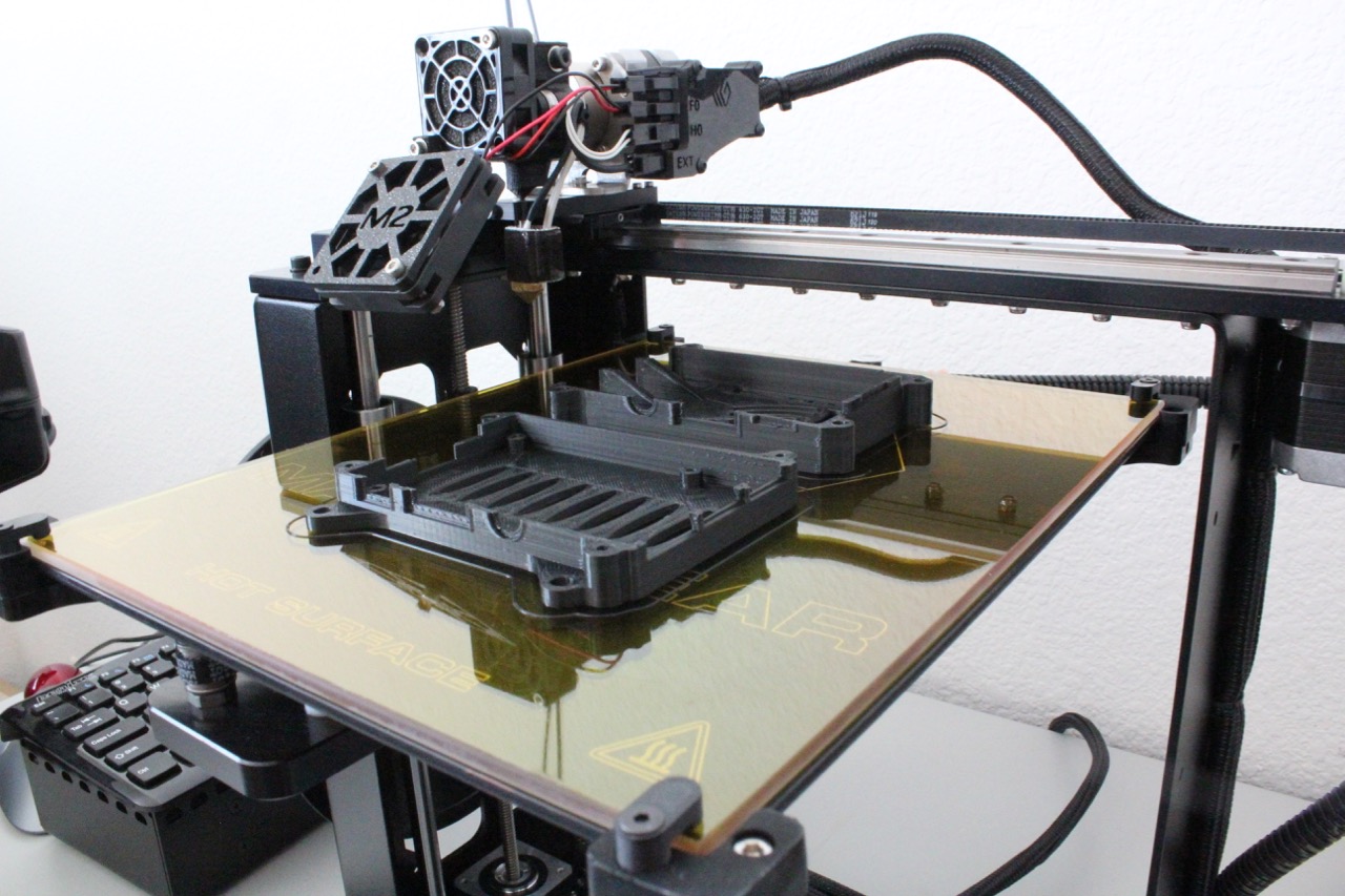 The belt tensions both feel about right to me. I had the printer connected to my MacBook Air, being fed directly from Simplify3D. I plan to add an OctoPi (that's what this case print is for) to the mix later, but I'm keeping things simpler until I get more experience. I have not yet installed my Dual Extrusion upgrade kit, and I'm using the black PLA filament that came with the printer.