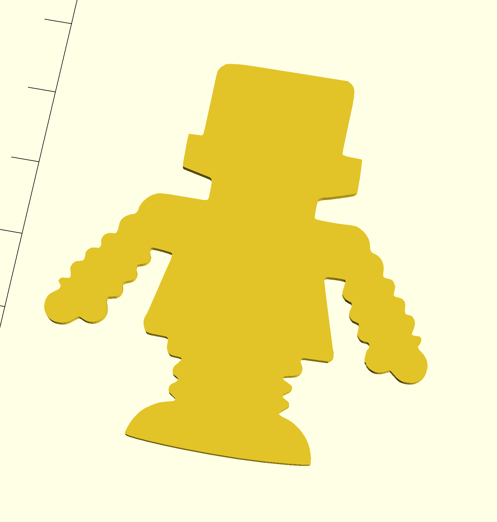 I just checked out your cookie cutter link, Ed. It appears things have improved since you wrote that. I used Inkscape autotrace (https://inkscape.org/en/doc/tracing/tut ... acing.html) and the Inkscape to OpenSCAD dxf tutorial you disparaged (http://repraprip.blogspot.com/2011/05/i ... orial.html) and ended up with this: