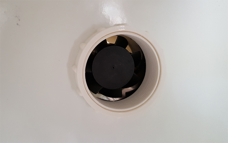 That fan is not very high flow, once the cabinet heats up to the point where it turns on (I set mine to 37c), it just about barely keeps up with the rate of heat generation so it almost runs continuously. That's not a bad thing in this case, since you get continual fume venting.