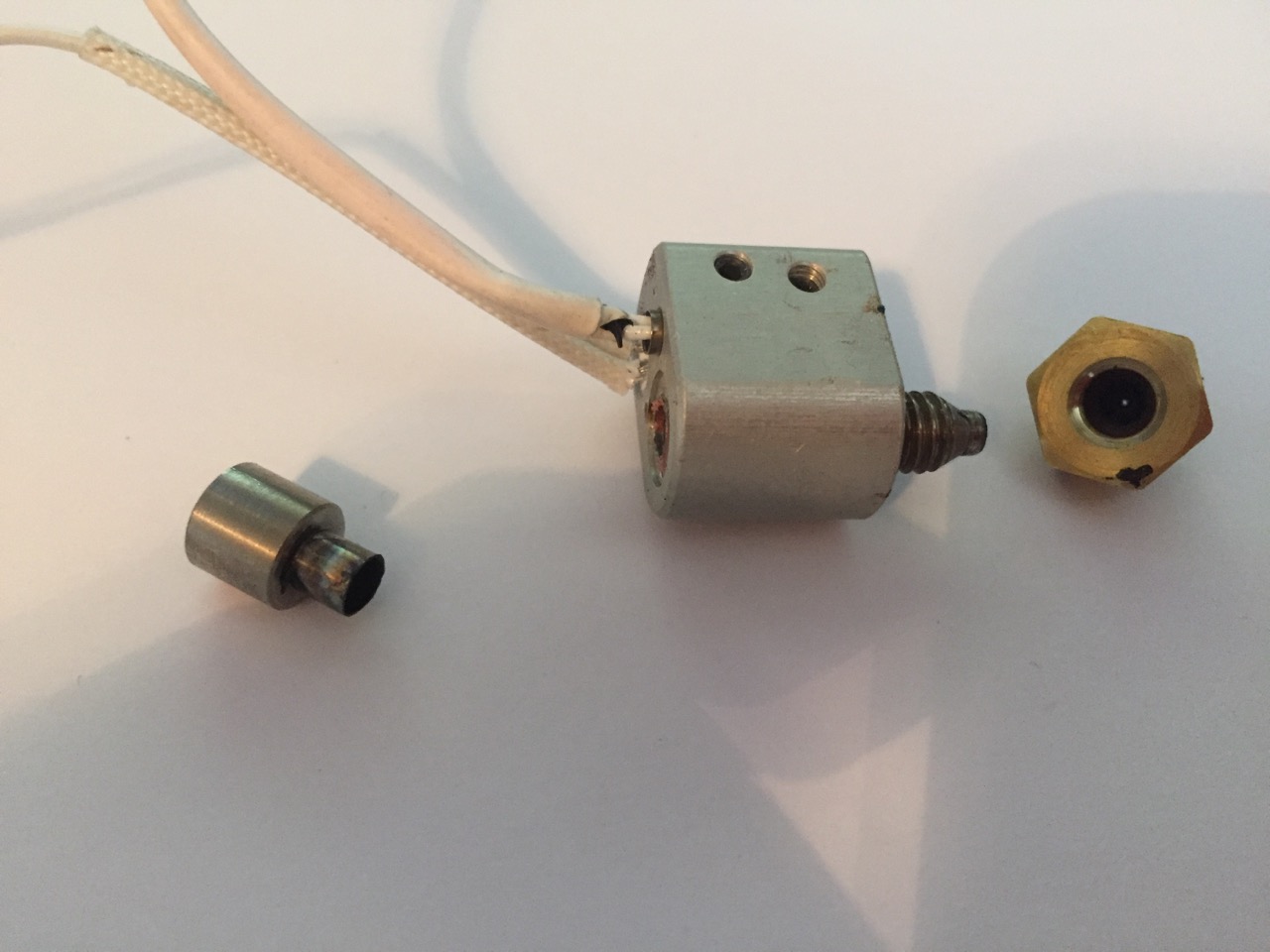 sthone wrote:Tried to take the nozzle off with the hot end still attached to the mount right? Been there...Done that.. even knew better.