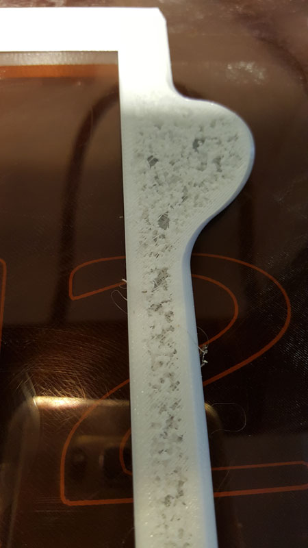 This isn't for the hydrogen plates, those were all ABS and 100% infill, 265 temp and something crazy like 8000 speed. But those all printed fine. This thing here is a thick walled shell that will be filled with plaster and used for pressing molds in a press. The wall thickness is about 1/2" and it damn near fills the entire build plate. I've taken the speed as low as 4000 and the temp as low as 250 but still get the problem. It looks like the infill traces break and the ends of the break flip up and cause spikes that then cause successive infill lines on the layers above it to also break and do the same thing. So it is a chain reaction that starts small and grows larger with each new layer. It might be caused by blobs on the tip sticking to the trace and breaking them. ABS never does this, which is why I've switched back to it and decided to do battle with the massive warp forces this part has to withstand at the corners. Even the PETG started to pull loose at the corners, but not as bad as ABS. It just seems that ABS is much better at healing over any defect that occurs on a layer compared to PETG. I can also print this giant part at 6000 speed with ABS, which makes a difference of about 10 hours compared to 4000. Going even less than 4000 would turn it into a solid two day print job.