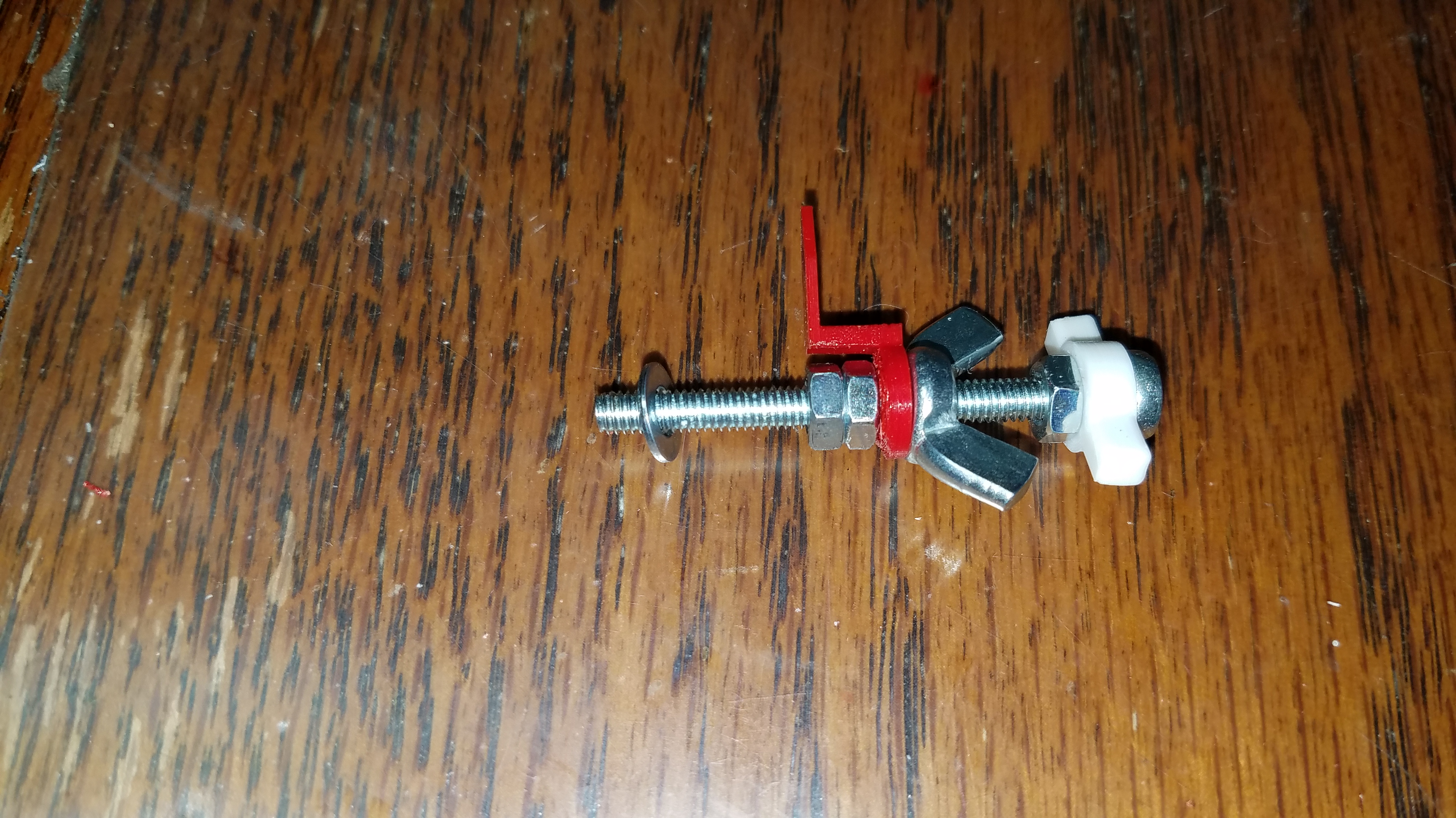 This requires a 30mm M4 screw, 3 M4 nuts, 1M4 Wiing Nut, 2 M4 flat washers and 1 M4 lock washer (note I only have 1 washer on mine but needs more)
