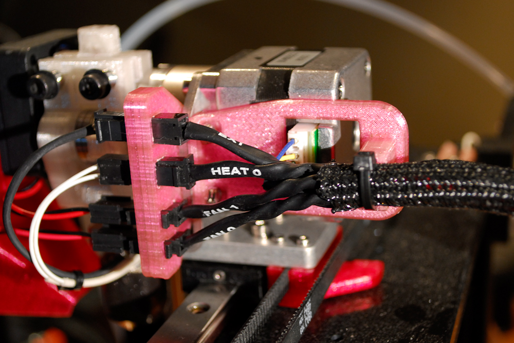 The new drive is working great but I installed the new Metal Motor Mount Upgrade (Which is AWESOME!) but with my fans being farther away than the stock setup the wires were to short for the plugs to fit into the wire box setup so I came up with this minimal design instead. I'm always swapping hot ends too so I want easier access to the plugs also.