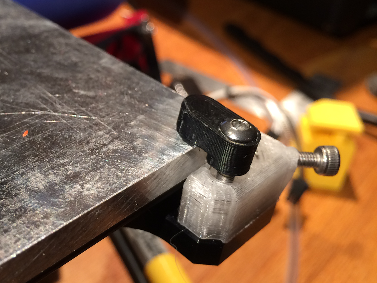 The hold down for the build surface. (I use Jim's printed corners in conjunction with the stock Rev. E hold downs because my heater plate doesn't sit flat even with the Mic6 plate on it.)