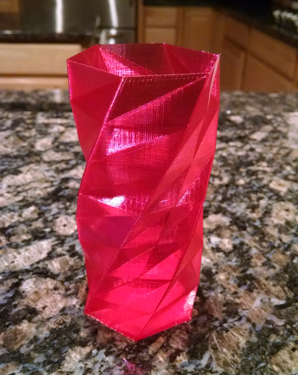 My vase stayed stuck to the bed (hairspray, and the bed at 70C as I mentioned before). But it popped off so easily I wouldn't say that it was firmly attached by any measure. I will also bump up the bed temperature to 80C for the next print. I noticed before that with my PET+, running the fan would cool down the bed and the piece would make alarming popping noises as it started to shrink and detach from the bed. I got into the habit of printing the PET+ without the fan running at all. The petg is obviously a lot better in that respect, but it's not totally immune from warping and shrinkage. I hope that just getting the right bed temperature will do the trick.