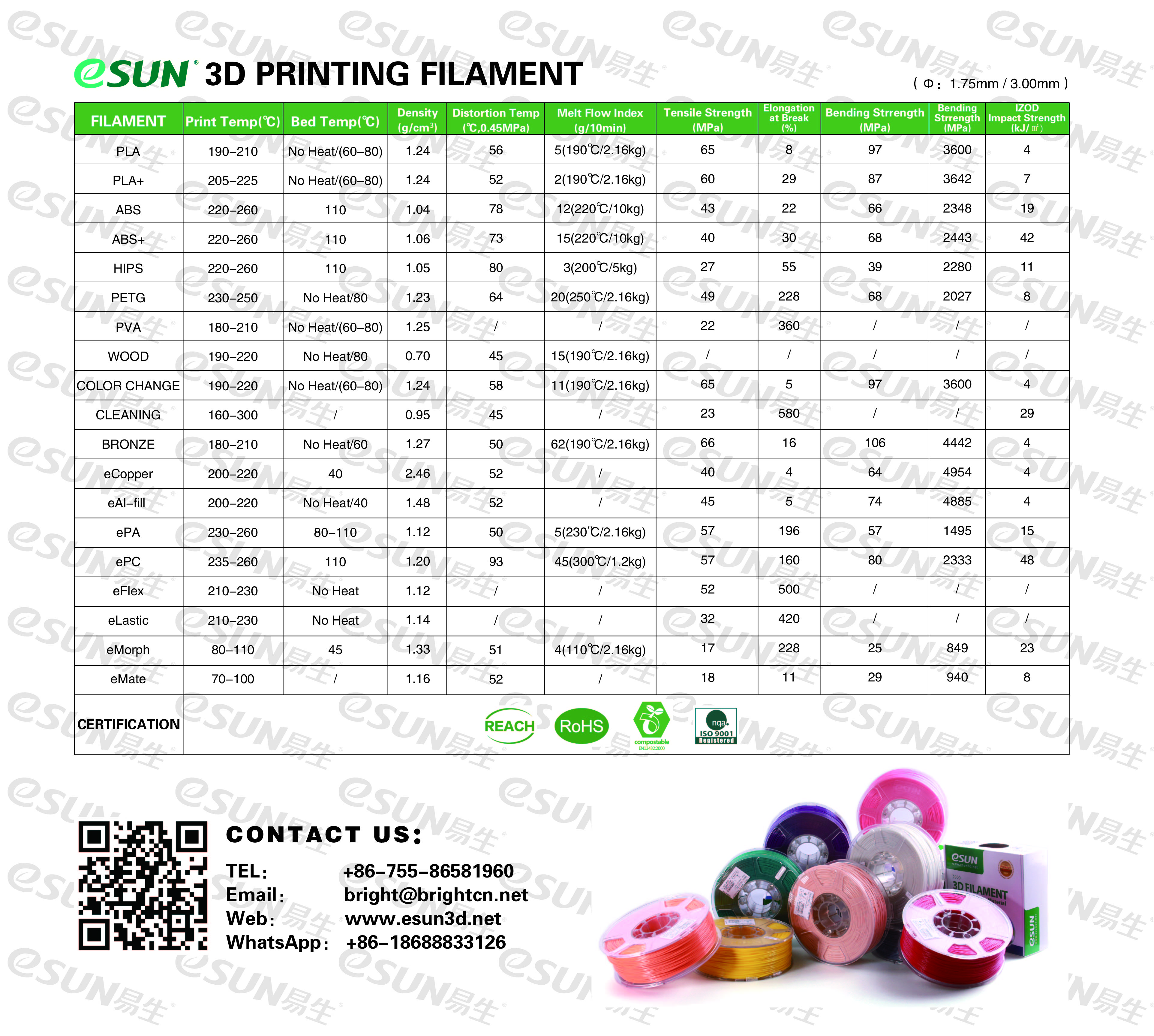 eSun sent me a great chart on thier filaments... see below