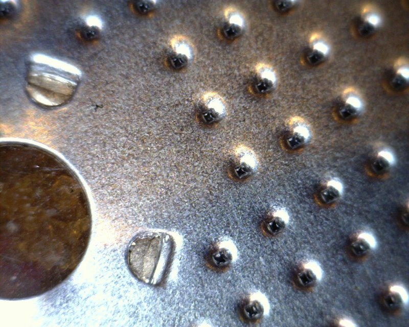 I was going to pitch the bad ones, but I also noticed the holes were tiny, IF they were actually punched through at all. I decided to check them against a good one under a microscope. Here what the good ones look like: