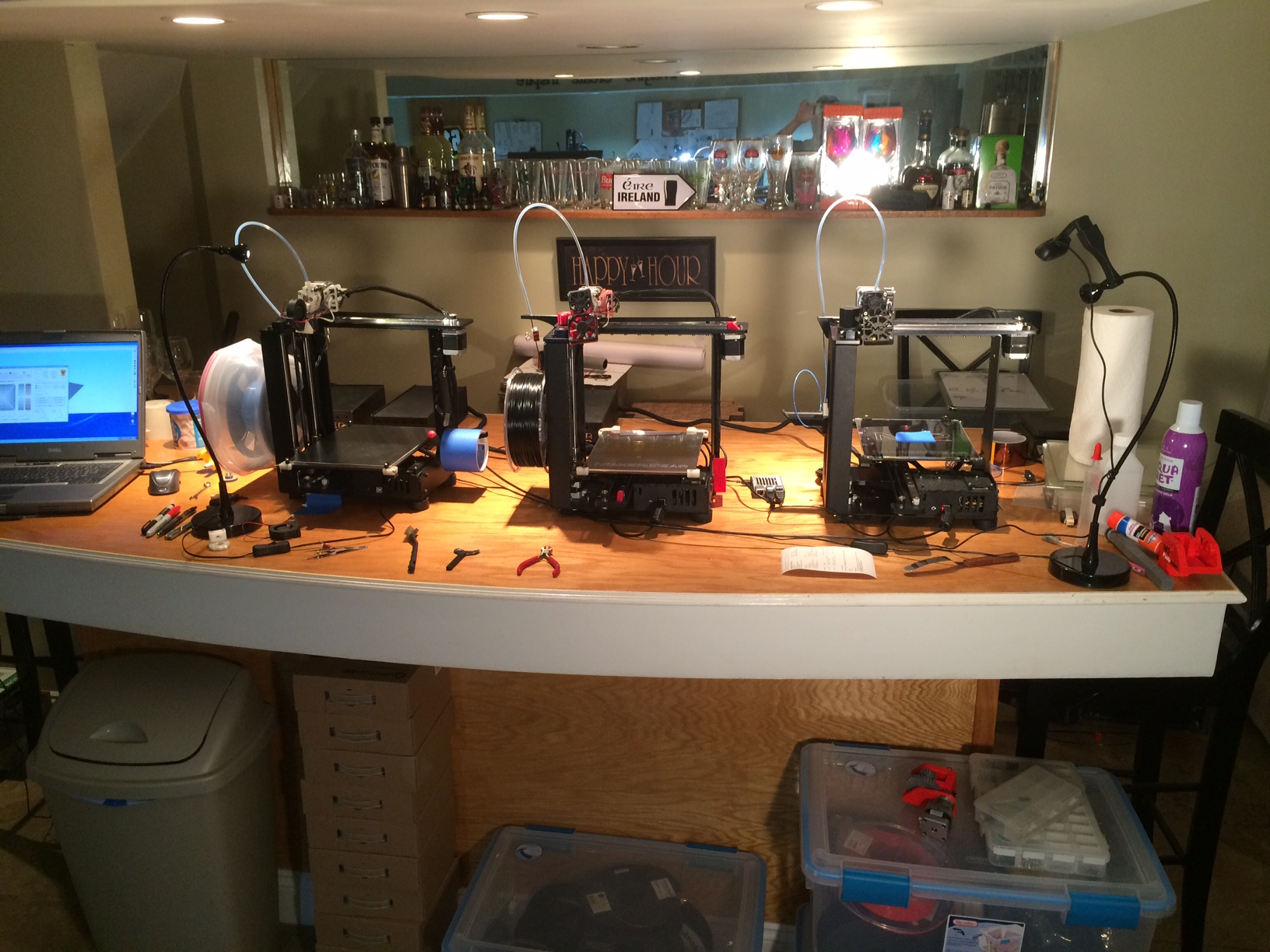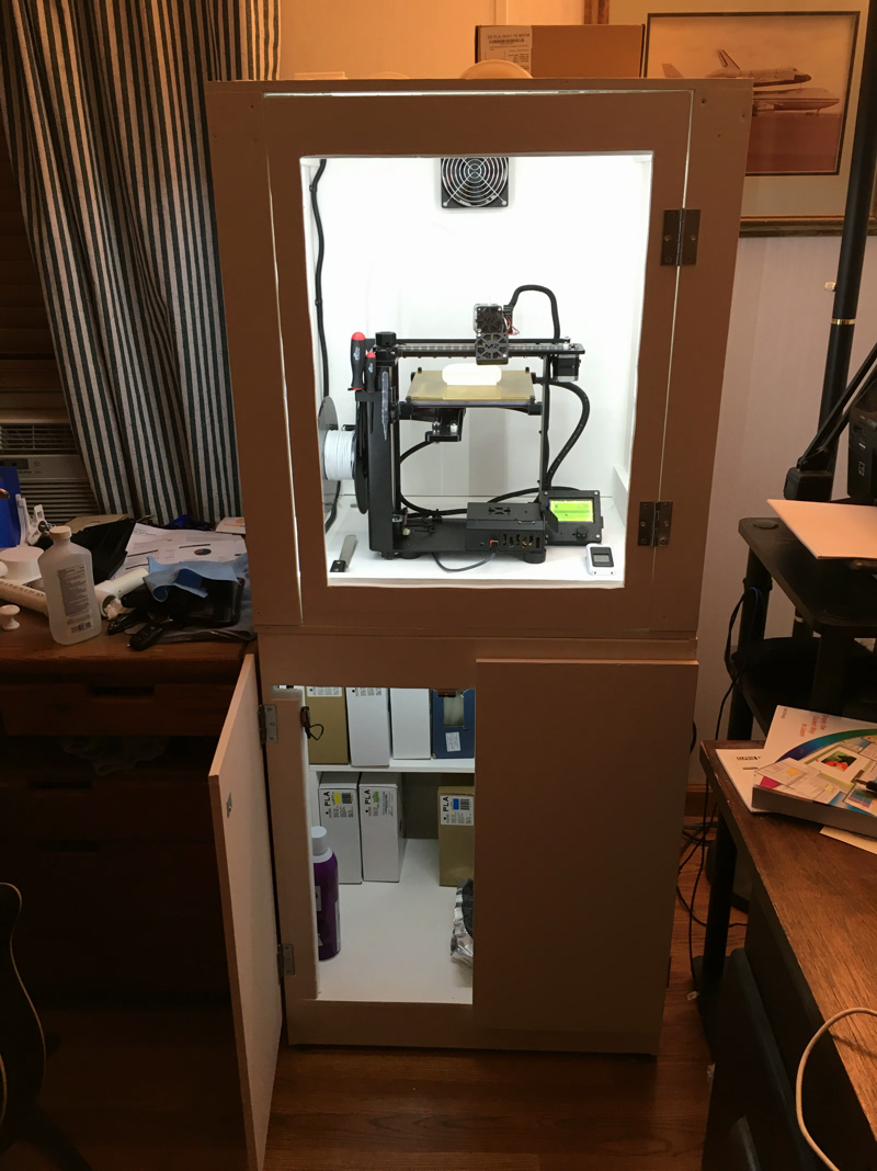 I happen to live in an Apartment in which has an attached garage that I turned into my work area. Needless to say, the car won't fit in there anymore, and my wife hates it because I spend most of my time in here printing and soldering.