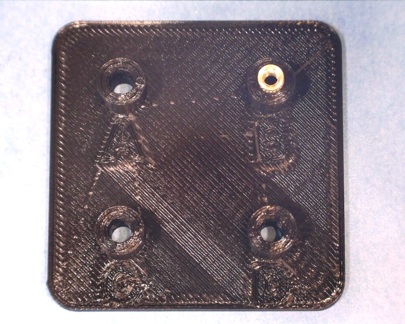 The first circuit housing went very smoothly, with 6 inserts installed. I'm running the tip at about the upper end of the nominal print temperature range. The inserts go in smoothly, but with just a bit of force. There's a tiny bit of "bounce back", where the inset wants to push back out of the hole a little, but if you let the iron/tip sit for a few seconds, that seems to relax & they stay put. They appear to self center nicely, and all the threads lined up very closely with the mating circuit board & hardware holes.