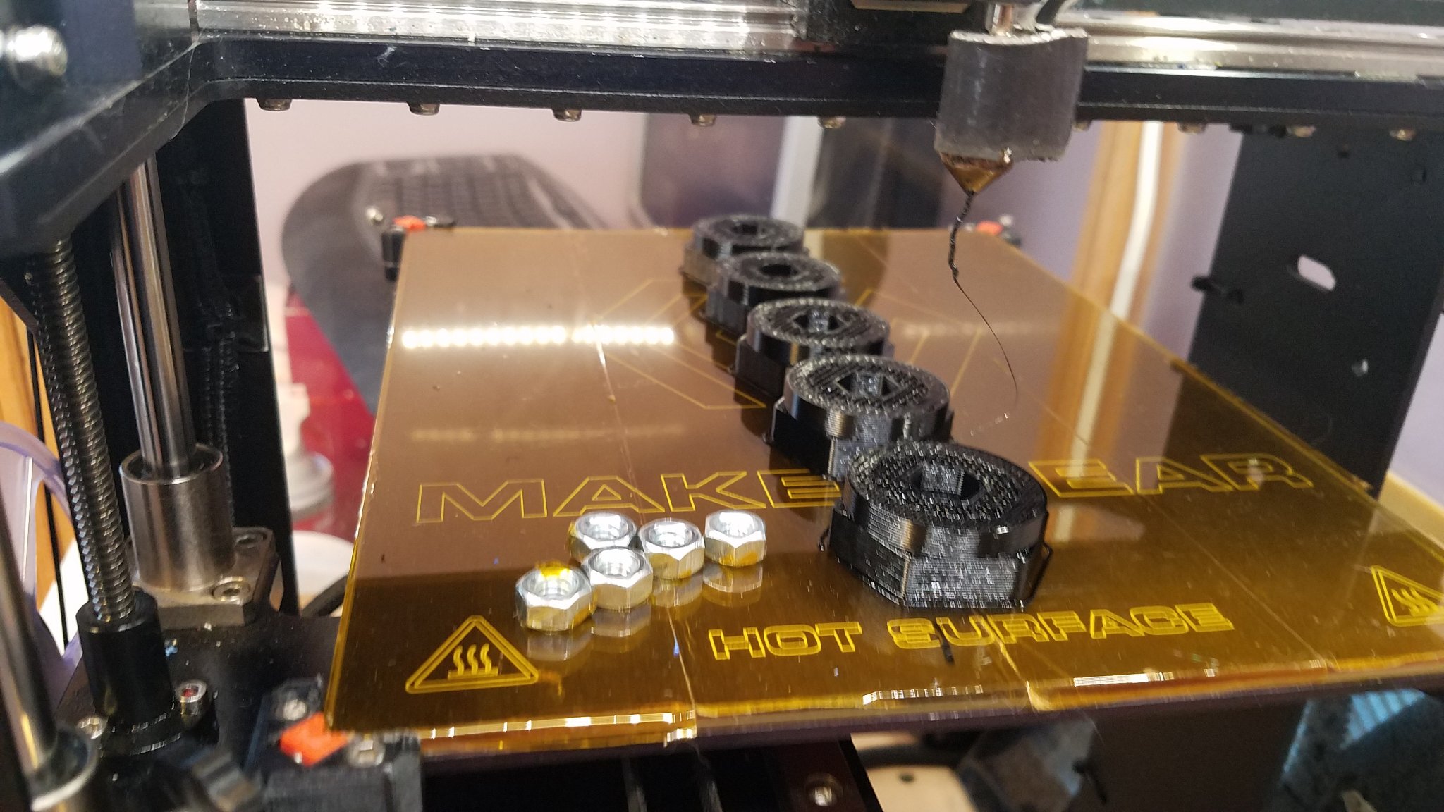When you have all the nuts placed in the prints, click the resume button on the octoprint control tab.