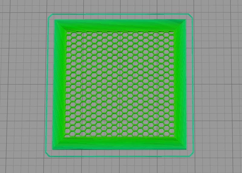 I found this quick way of making screens type guards and such in Simplify3D yesterday using the Fast Honeycomb infill setting and thought I'd share.