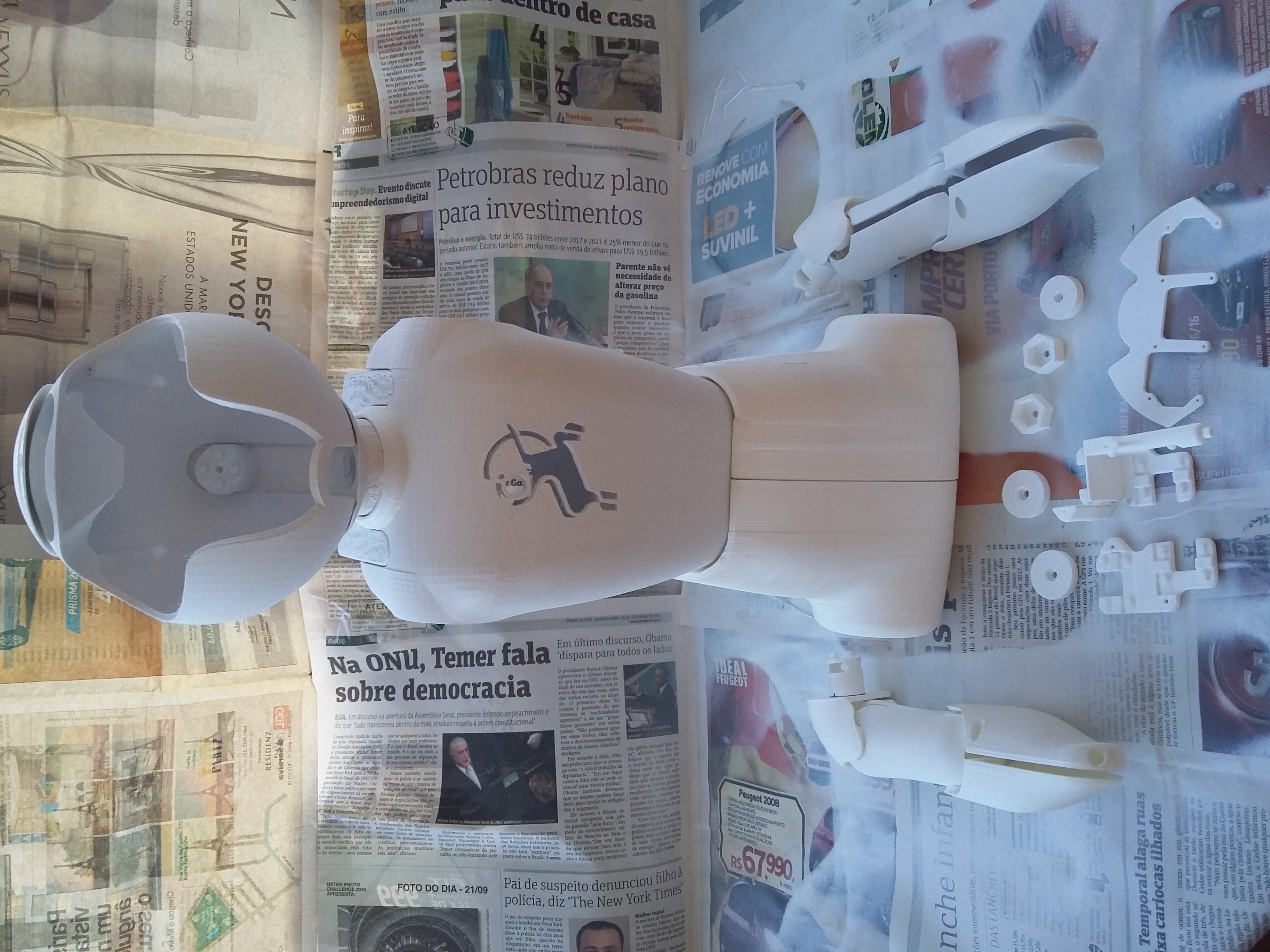 The parts are all hollow, so I had to print with tons of support! The outter surfaces always had to be on top, to enhance the aspect of the part. In the interior, the parts look very awfull, but all of the internal elements of interface, are there. We'll check the prints with the eletronics tomorrow.
