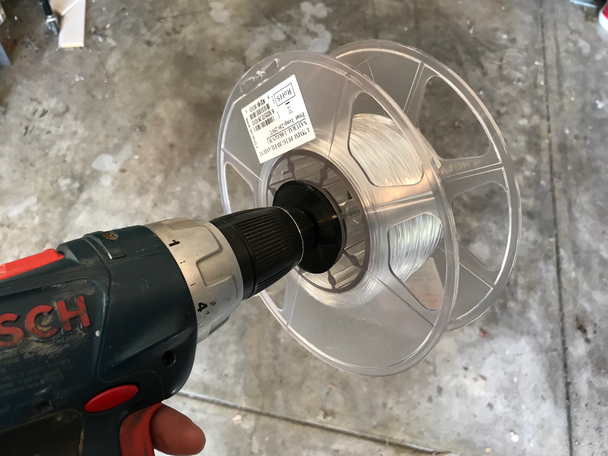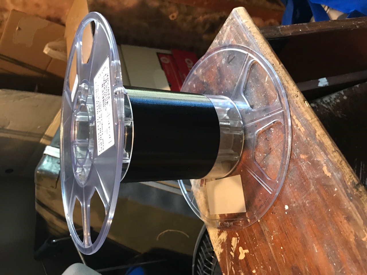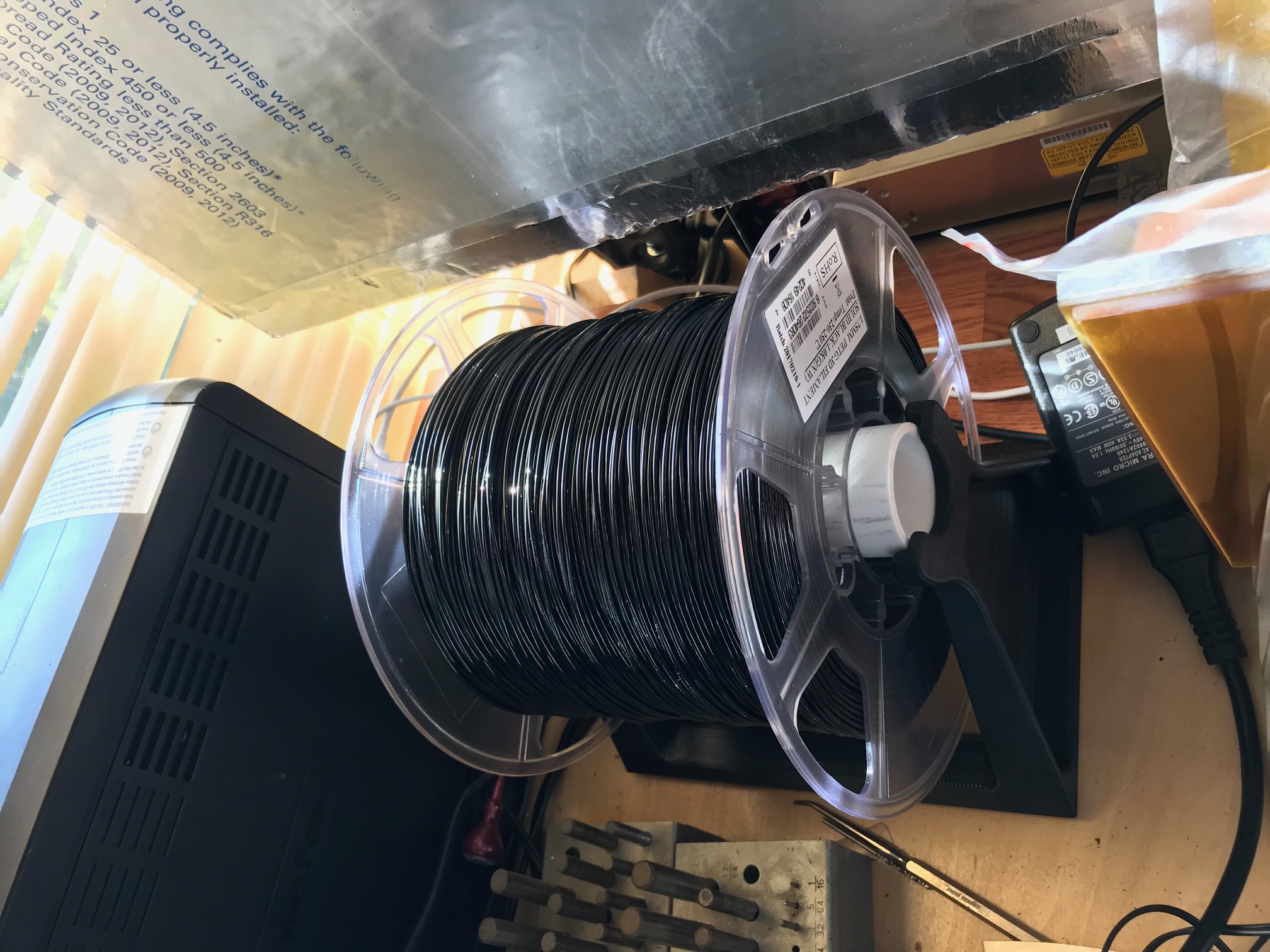 I decided I could use a bigger spool - one large enough to hold enough filament for 3-4 consecutive builds. That way I could splice together all the partial spools I have and get a few parts from the drops - and even when starting from new spools, I could splice two new rolls together and get 3 parts with less leftover material.