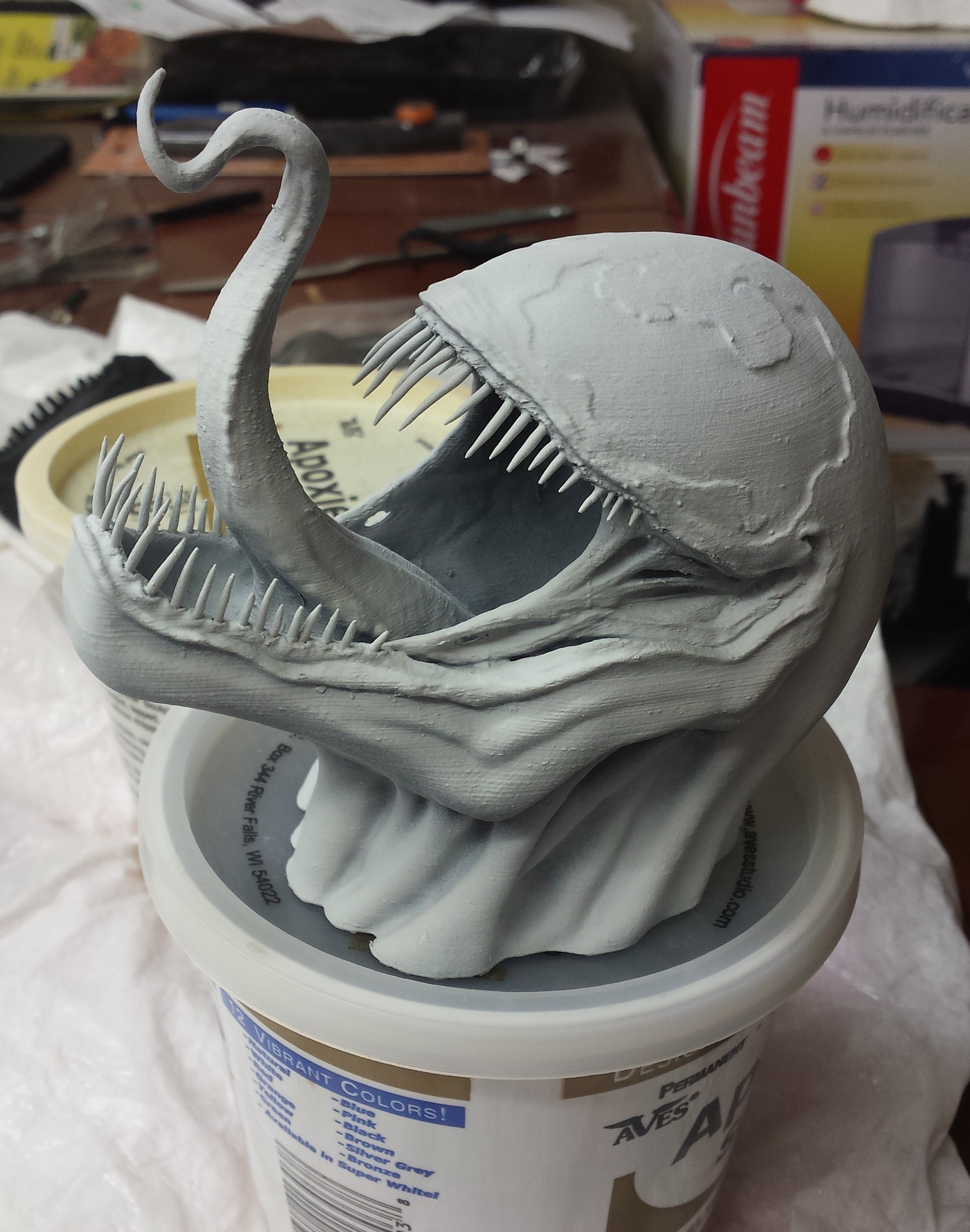 Did a light coat of white primer seen as I was having a hard time getting a nice shot with that glossy black PLA. Teeth were sculpted with Aves Apoxie