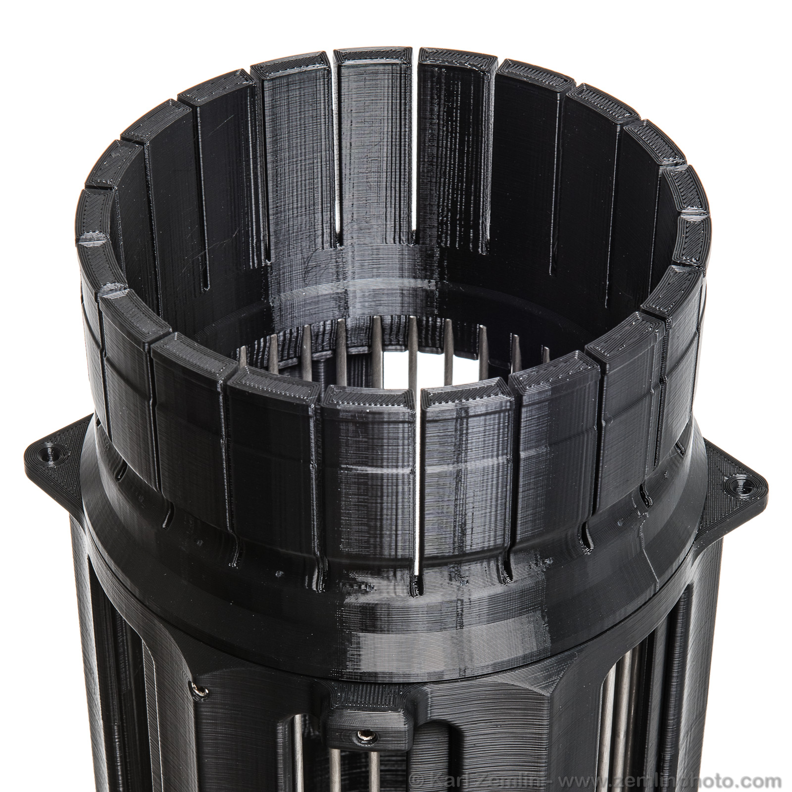 I wanted the two inner sleeves to be orange, but I ran out of orange filament due to a failed build.