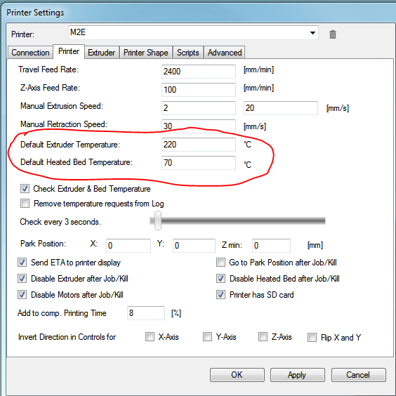 Communication settings: Default temps for PLA (assuming you're using the spool of PLA included with your printer): Print area dimensions: Copy the config.ini from the SD card to your computer Then import your slic3r settings (this is where the tweaking magic happens):