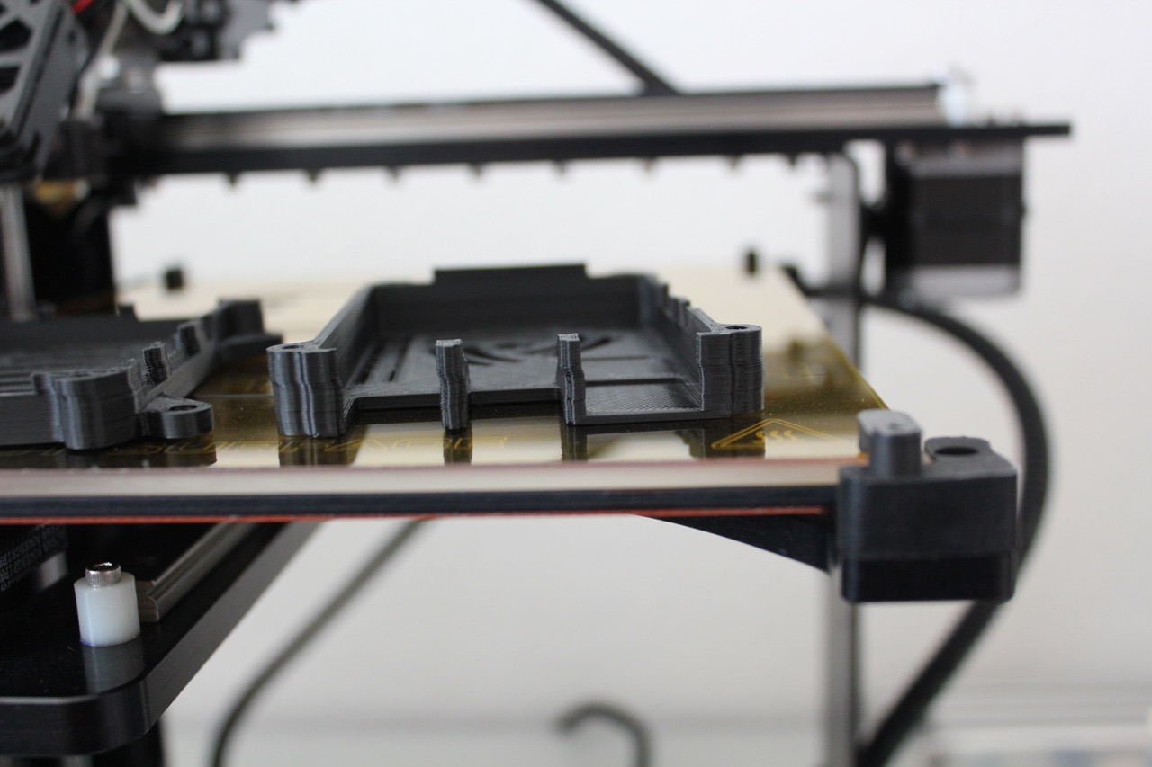 The belt tensions both feel about right to me. I had the printer connected to my MacBook Air, being fed directly from Simplify3D. I plan to add an OctoPi (that's what this case print is for) to the mix later, but I'm keeping things simpler until I get more experience. I have not yet installed my Dual Extrusion upgrade kit, and I'm using the black PLA filament that came with the printer.