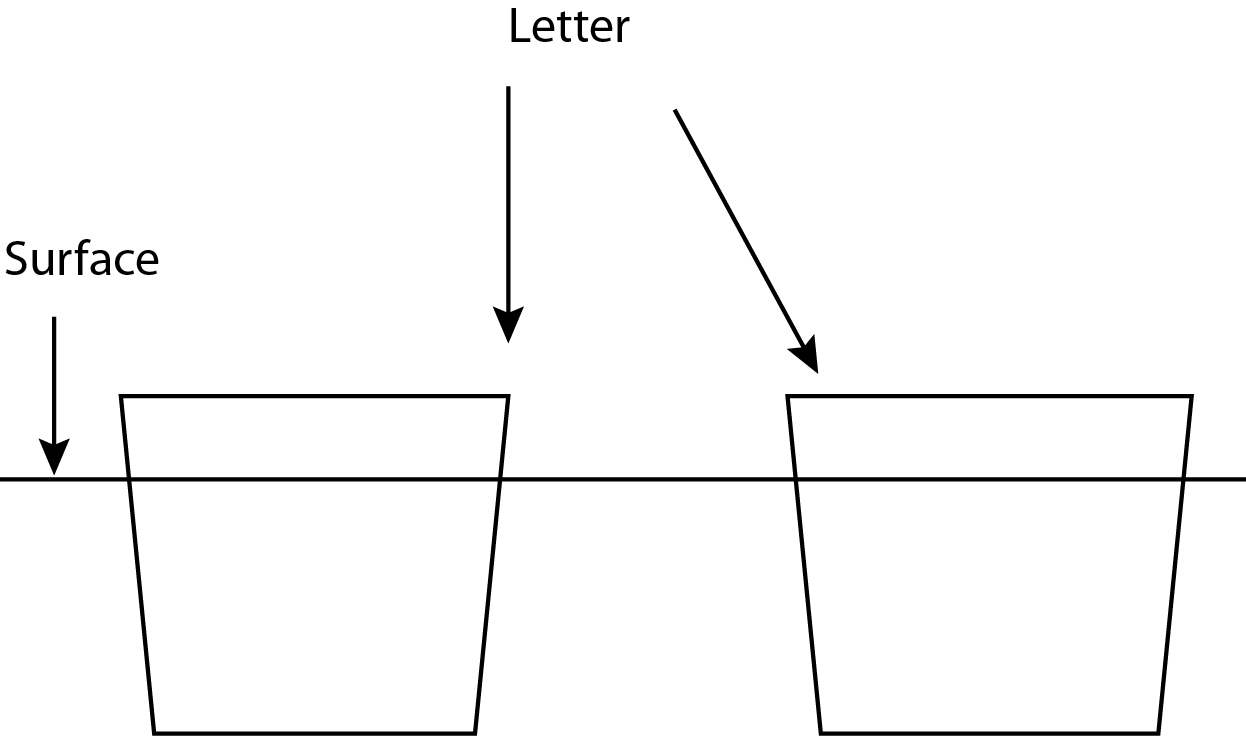 But that angles the entire word proportionally, so that the letters on the ends are more angled than the letters in the center.