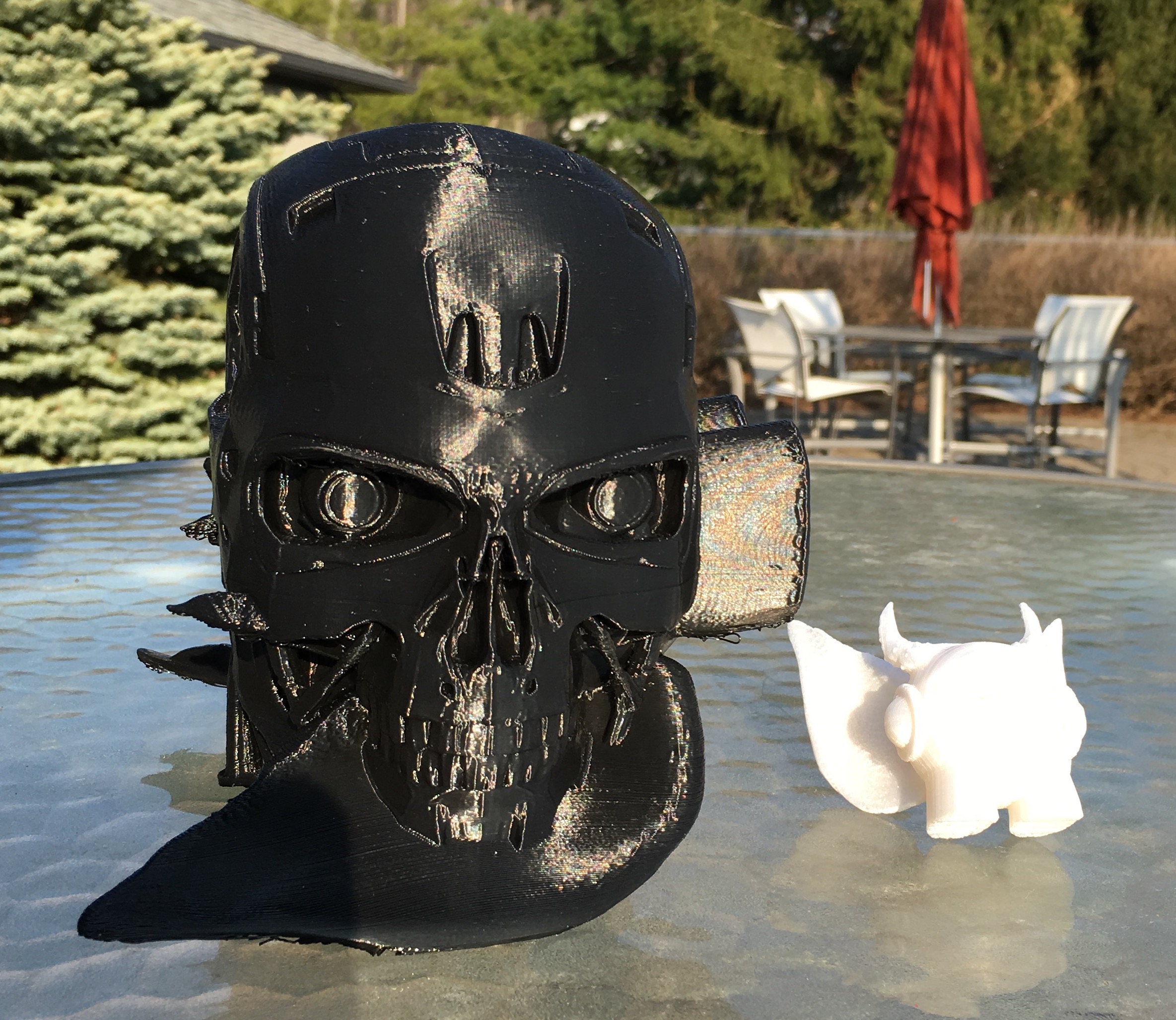 The two objects were the terminator 800 head and a winged round guy with feet. I printed the terminator head first, then went for the winged round guy. Got both merged into one.