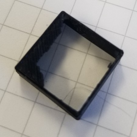 After running airscapes' test print and process I got height and thickness for the 26mm x 26mm x 2mm thin box of 2.06mm height and .406mm thickness with first layer height of 90% and extrusion multiplier of (I think - I don't have it in front of me) .91. No pictures of that since there's no fill. By this point I was tired of boxes, so I printed a spare part to see how the fill turned out: