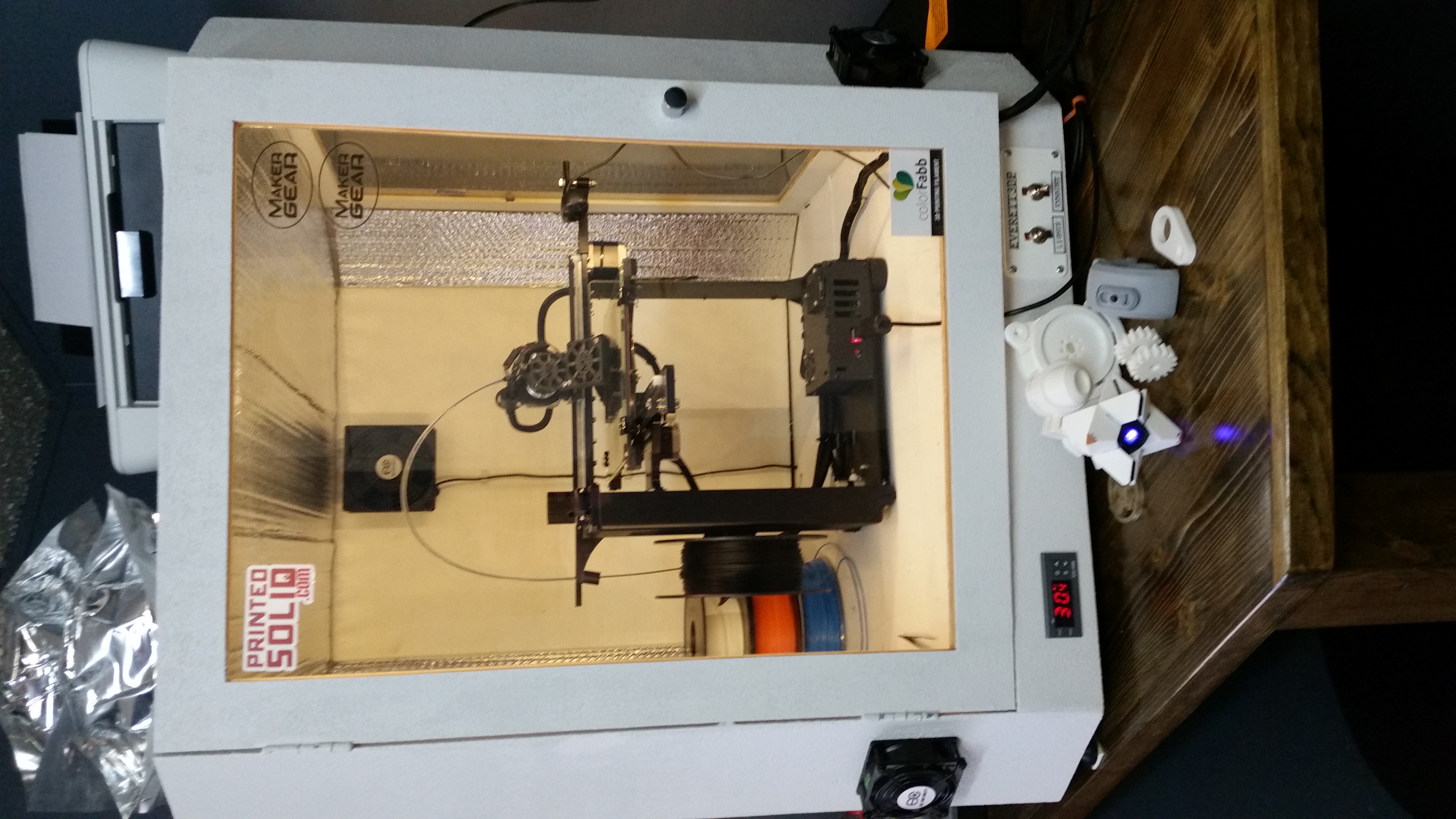 Your enclosure looks great. What temperature are you running it at, and does it help with printing ABS?