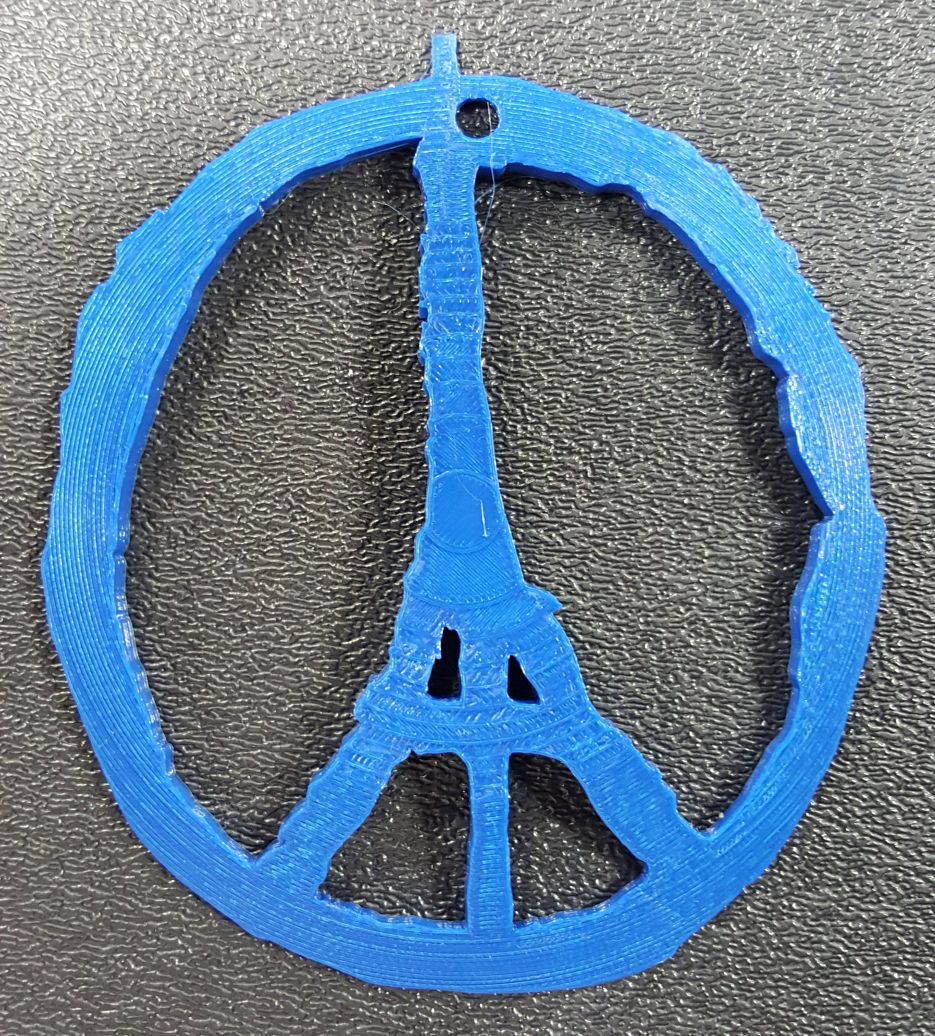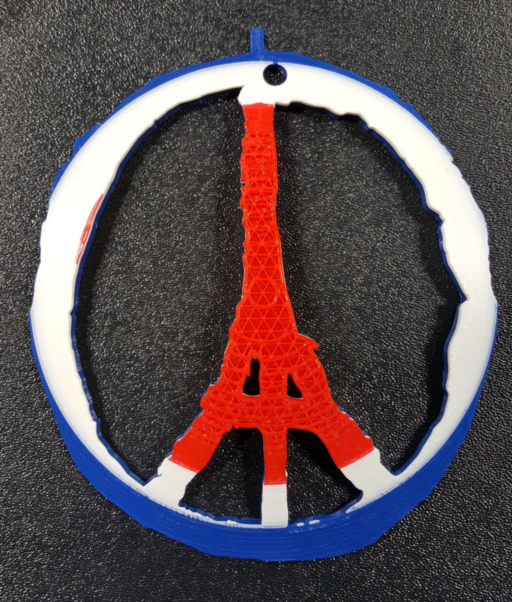 Josh modeled and printed the Paris peace symbol. It would look very nice printed in blue white and red.