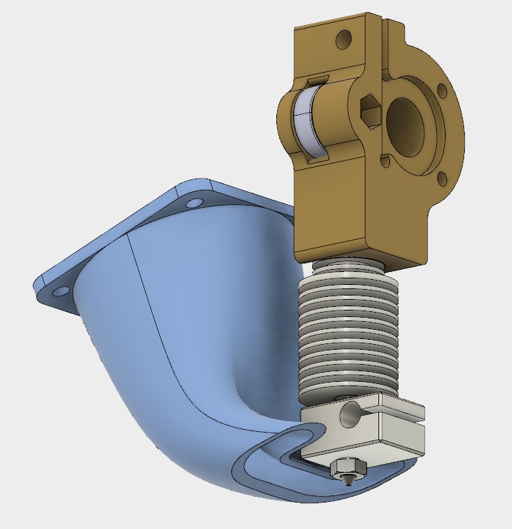 In the process of updating to an E3Dv6 hot end. As this requires a new extruder mount I decided to try a duct for my 50mm bed fan. I have attached a few shots of the design. Thoughts/comments/suggestions? I am not convinced that a bed fan duct really helps cooling or improves print performance but it seems many users have adopted them. The duct improves containment of the airflow but it also causes a pressure drop which lowers mass flow. Perhaps a duct with a higher capacity fan (20mm thick vs 10mm) is better but it seems simply using the same fan with a duct could potential reduce printing performance.