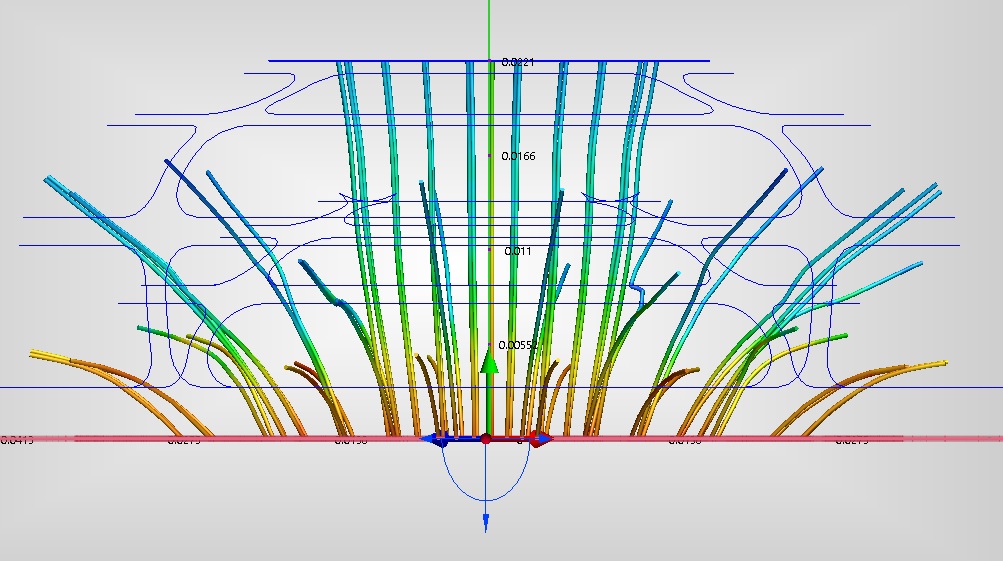 Thanks Insta. For grins and giggles I ran a simple CFD analysis on the duct assuming a 0.1" H2O static pressure at the inlet. Distribution looks nice and it seems the tongue in the center nudges air to the perimeter on either side which is what I was hoping would occur. The simulation does not take turbulence from the fan into account so everything looks nice and uniform. I will likely add a .25" straightener in the section of the throat just below the flange face to help reduce turbulence.