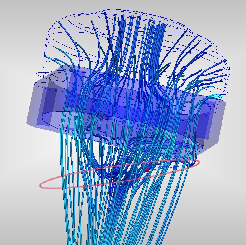 CFD of the fan guard looks promising as well. Very little pressure drop (<0.09" H2O) and good distribution. Knock off a few of the sharp, interior downstream edges and it should be in good shape.