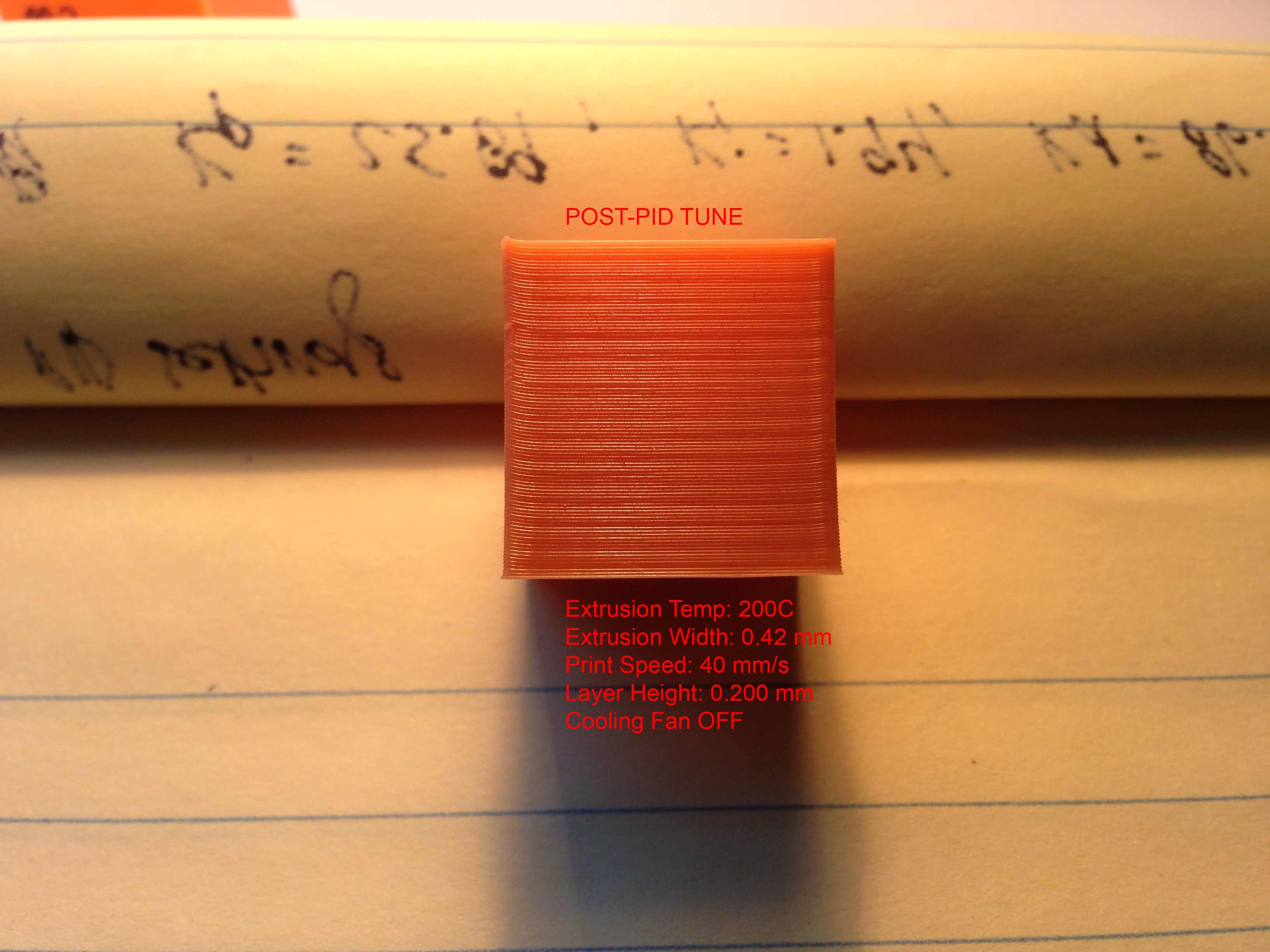 I never thought of it before, but your PID explanation regrading surface finish makes total sense. The pattern seems too regular to be a lead screw defect, or filament diameter variation. I know from experience that printing this brand of PLA at higher temps produces a glossier finish in the final part. Watching the LCD I can see temps fluctuate +/-1-2C.